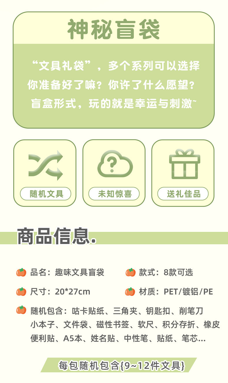 | Especificaciones | [explosivo] 8 - libro de notas panda, [rendimiento de costo] 10 - bolígrafo de cepillo Morandi aleatorio, 5 - broche de cabeza panda, 5 - libro de bobina de estilo nacional aleatorio, 3 conjuntos de rompecabezas militares de gran tamaño, 5 - abrazadera de cola larga magnética de gran tamaño, 10 - bolsas ciegas de llavero de dibujos animados, 8 pares de 16 marcadores magnéticos de motivación, 4 libros - estilo de post-it post al azar, 40 hojas - tarjetas de raspado para enviar película de raspado, [nuevo producto] 3 conjuntos de papelería, 10 - ventiladores de texto de motivación mezcla, 3 cajas - doble cabeza plegable resaltador de color, 10 - llavero panda, 4 - bolsas de archivo de anillo de inspiración, 4 libros - libro de palabras panda, 10 bolígrafos de dibujos animados al azar, 10 bolígrafos de cepillo, 5 bolígrafos de esmerilado, [rendimiento de costo] 10 bolígrafos de escritura gigante azul, 6 - corrección con pegatinas de panda, 5 libros - pequeño tamaño de post-it, 20 - clip de empuje de color mixto, 1 - bolsas ciegas 10 - 12 papelería, 6 paquetes - pegatinas de índice 3 mezcladas, 5 libros - notas de dibujos animados, 5 juegos - regla de título de la lista de oro, 10 - clip de papel de prueba de hielo, 4 - color aleatorio de resaltador de metal, 4 libros - borradores, 10 - bloques de hielo pellizco, 40 hojas - marcadores DIY para capturar el tiempo, 4 - caja ciega de plantas, 4 juegos - marcadores de estilo nacional, 4 paquetes - marcadores de petita de estilo nacional, 1 paquete de materiales hechos a mano de lámparas de libro en forma de ventilador, 4 libros - libro de notas de caligrafía, 4 paquetes - pegatinas de oro de poesía paisajística, 2 cajas - dibujo de inspiración, 6 - Poetic Postcard Random, 10 - Pocketbook Random, 4 paquetes de 40 marcadores de hoja de petita, 20 - Capibara Booklet, 4 - Keychain Benediction, 8 - Postcard clásica |
