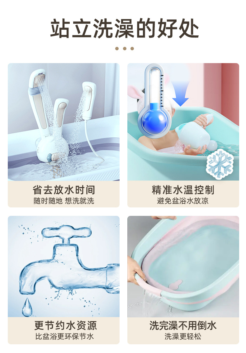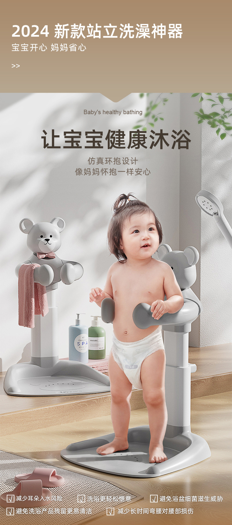 Artefacto de baño de pie para bebé, baño para bebé, ducha de trasero, antideslizante, reposabrazos verticales para niños
