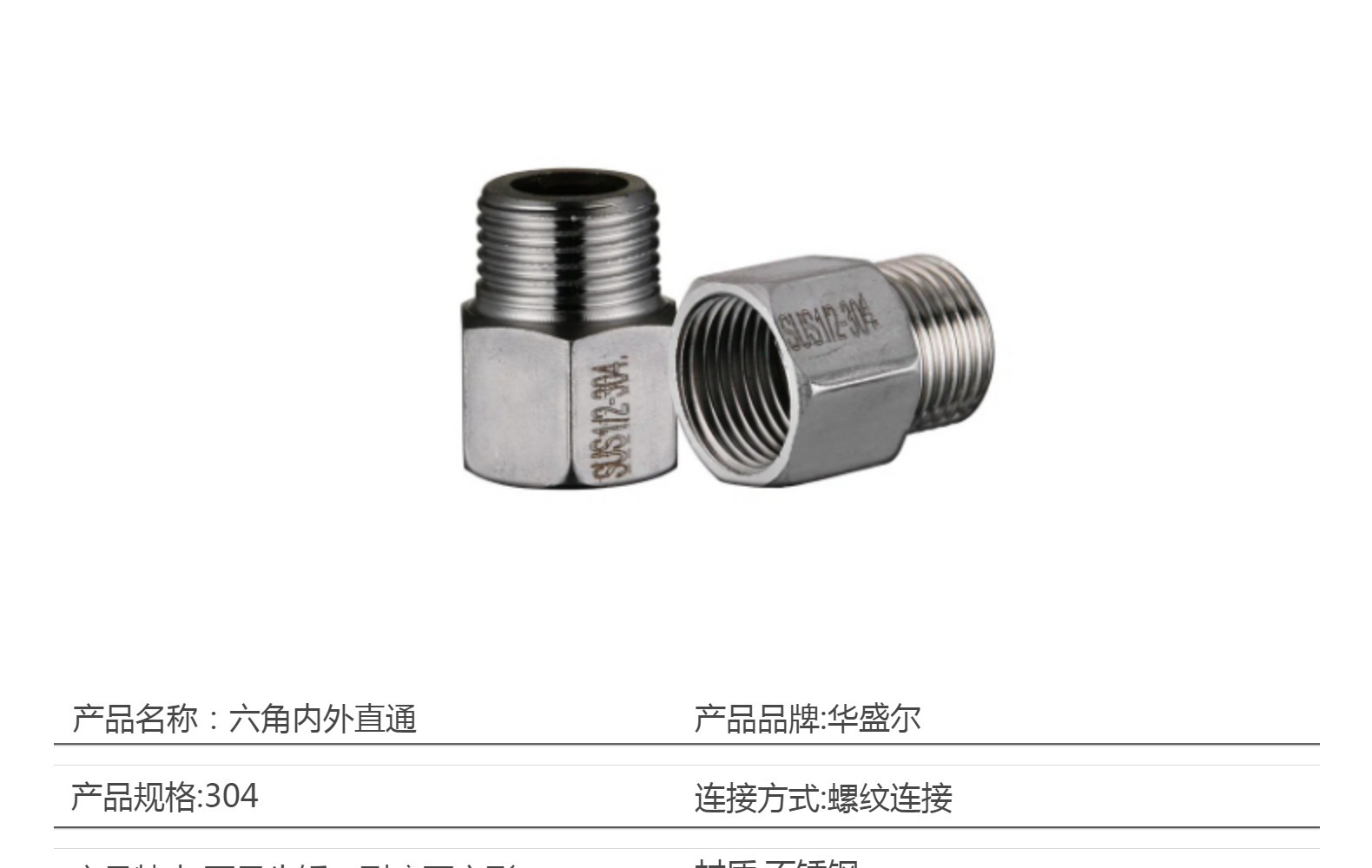 304不锈钢内外丝变径大小头内牙转外牙接头 六角螺纹异径管箍直接
