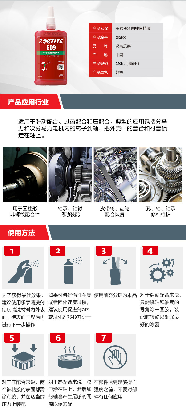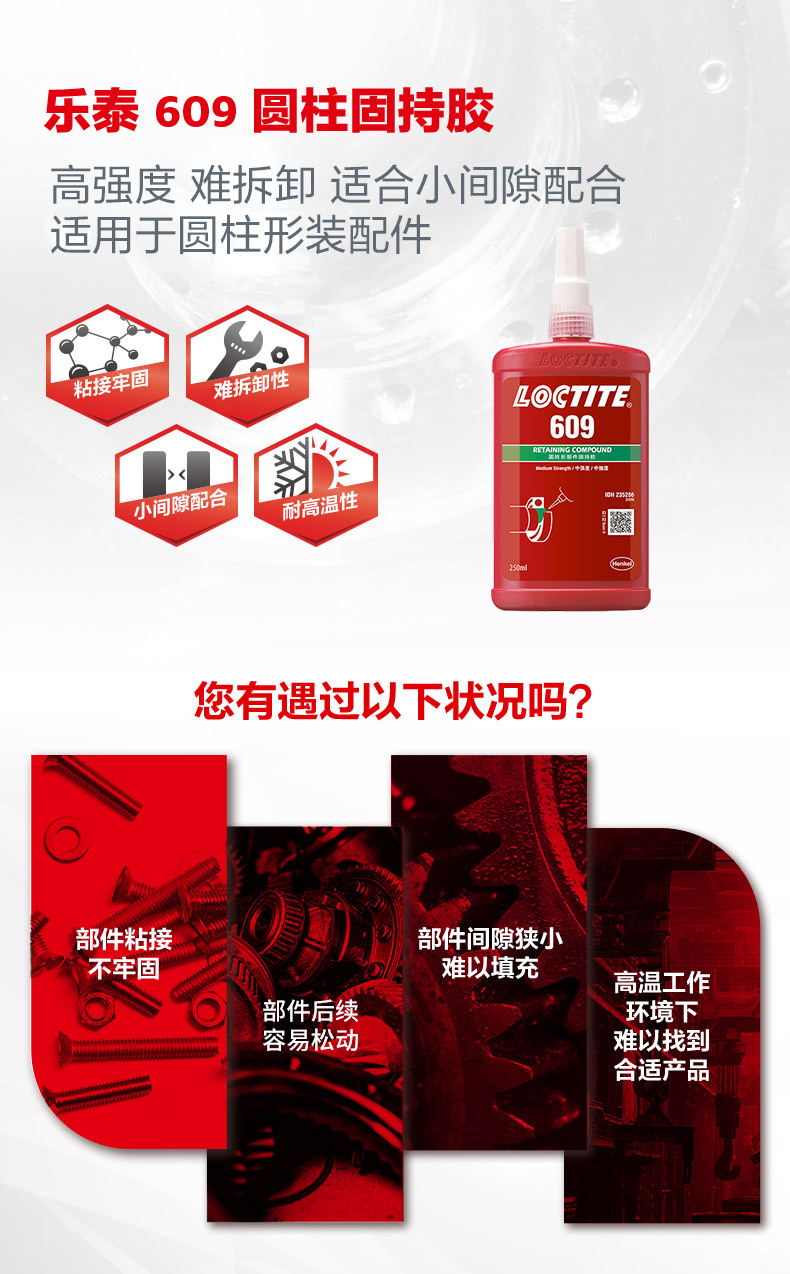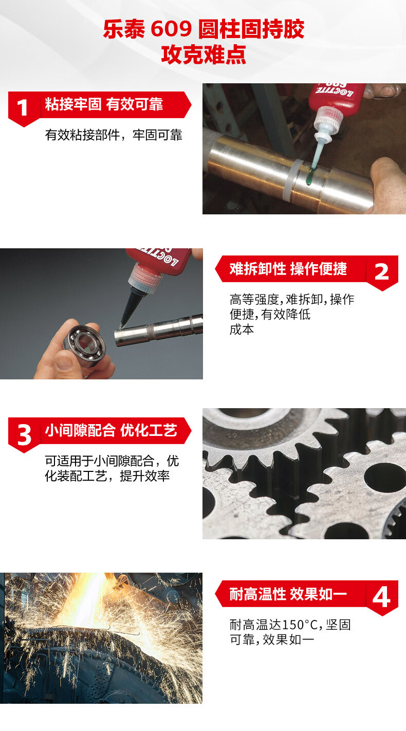 Locte 609 pegamento fuerte de retención, pegamento fuerte anaeróbico de alta resistencia, accesorios cilíndricos, unión 250ml