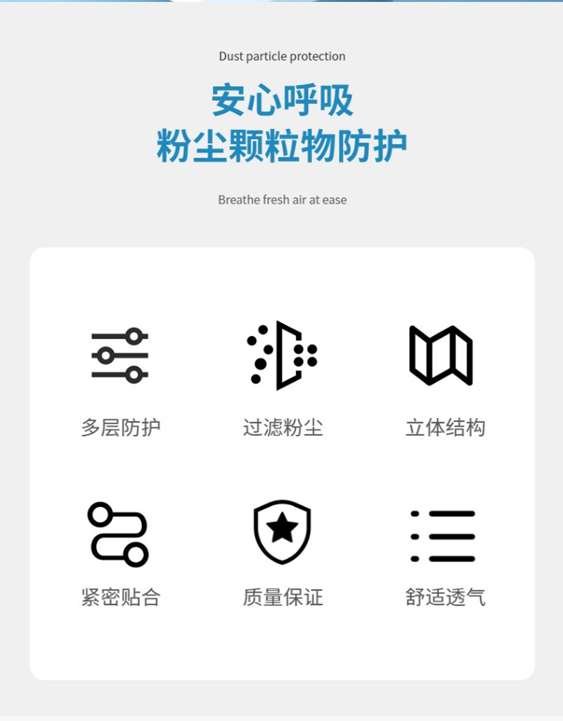 Descenso máscara desechable para proteger la respiración ligera y delgada, antipolvo para adultos tridimensionales, una caja azul de 50 piezas