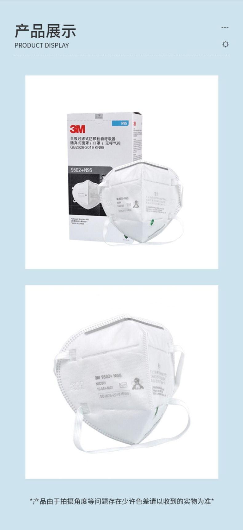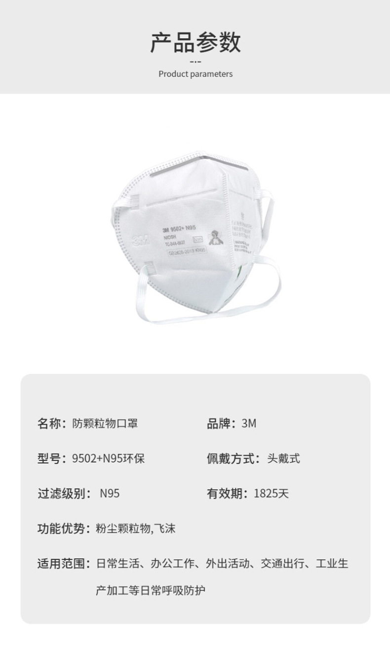 3M 9502 N95 máscara montado en la cabeza doble pieza independiente 50 piezas/caja