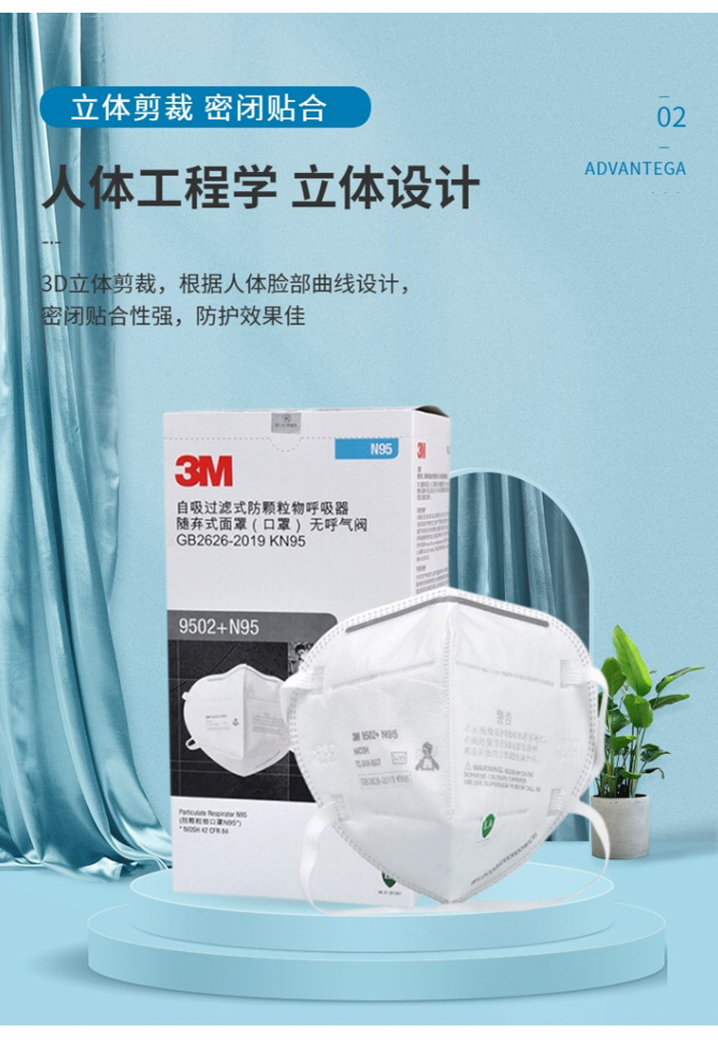 3M 9502 en caja desechable 3D partículas de polvo de protección tridimensional máscara industrial a prueba de polvo máscara N95 al por mayor