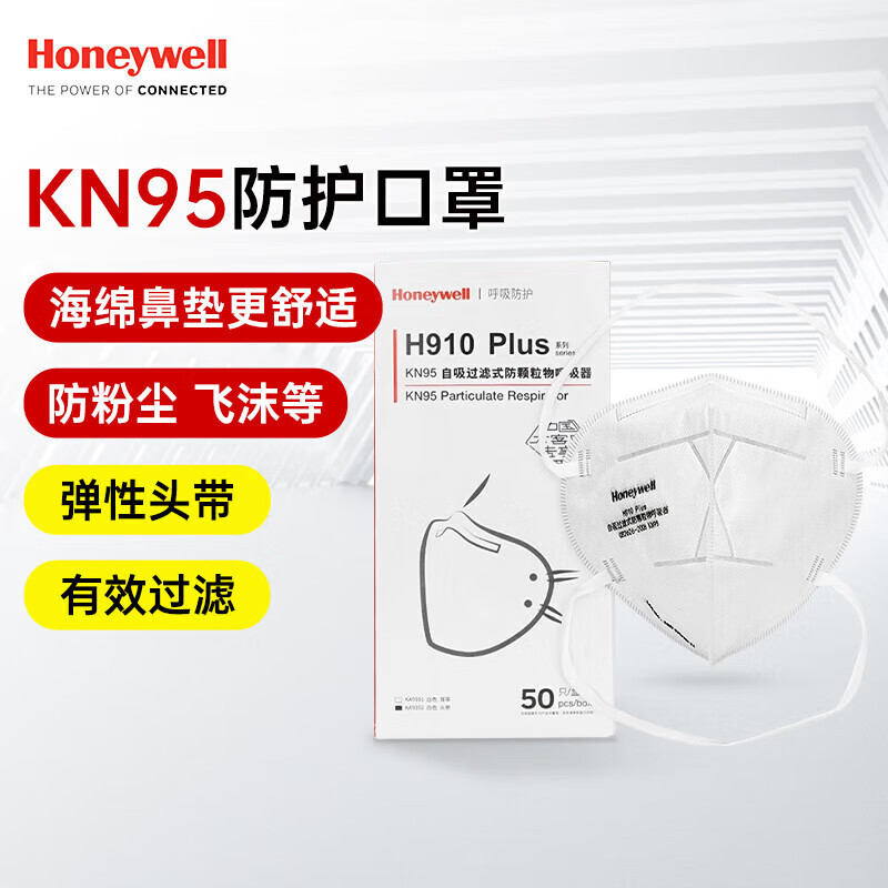 Honeywell H910Plus carbón activado a prueba de polvo a prueba de niebla decoración máscara para la cabeza doble paquete de 50 piezas / caja