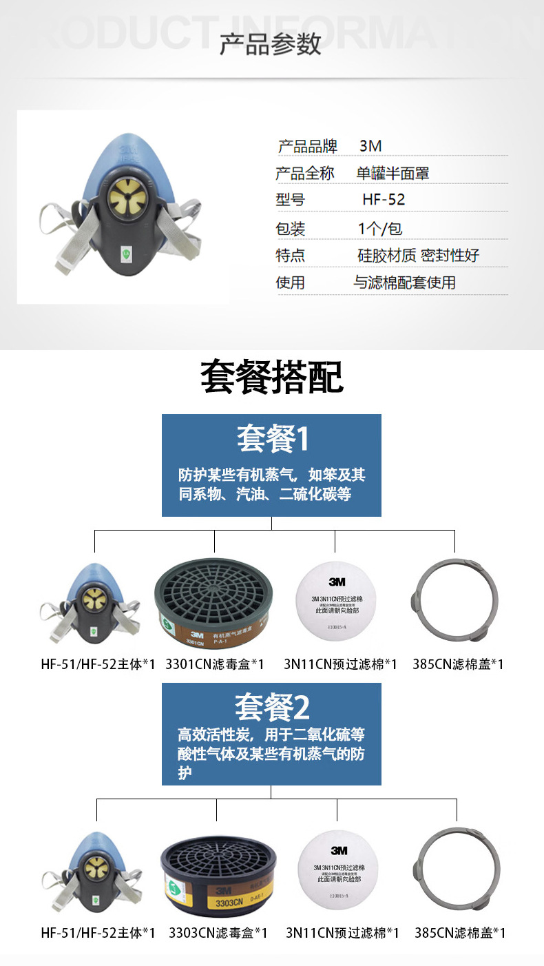 3M HF-52 de fábrica de productos químicos de silicona Sola Media máscara de pintura en aerosol pesticida polvo máscara al por mayor Anti-Virus kn95 protección