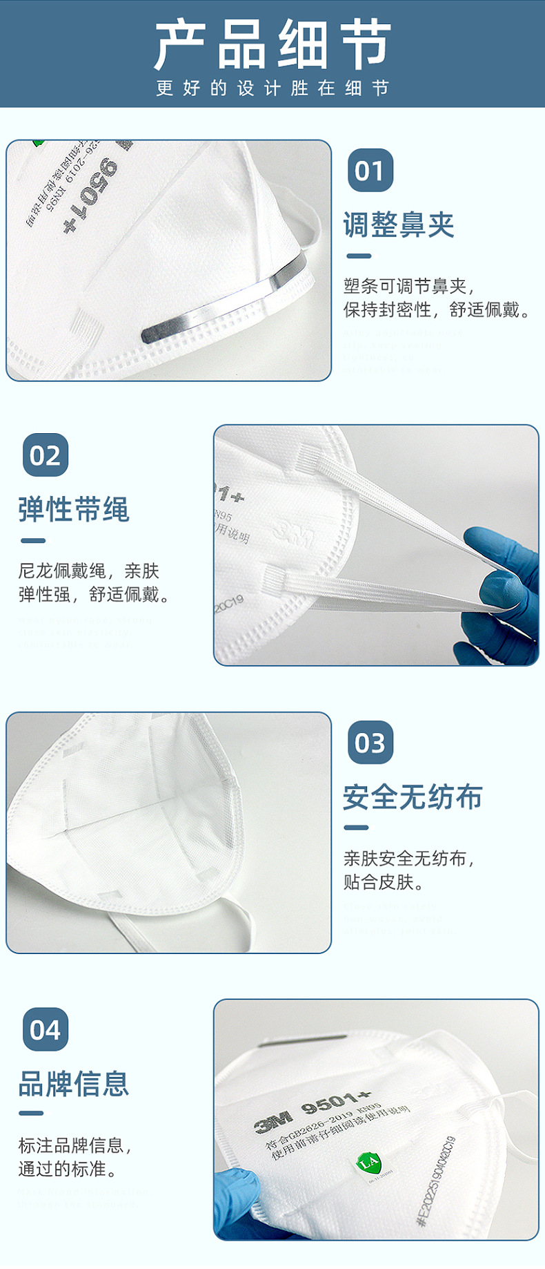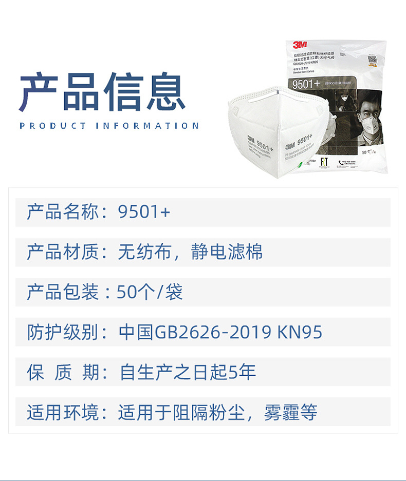 3M9501 + anti-industrial partículas de polvo oreja-colgando desgaste protección del medio ambiente anti-polvo 3M máscara al por mayor kn95 máscara protectora