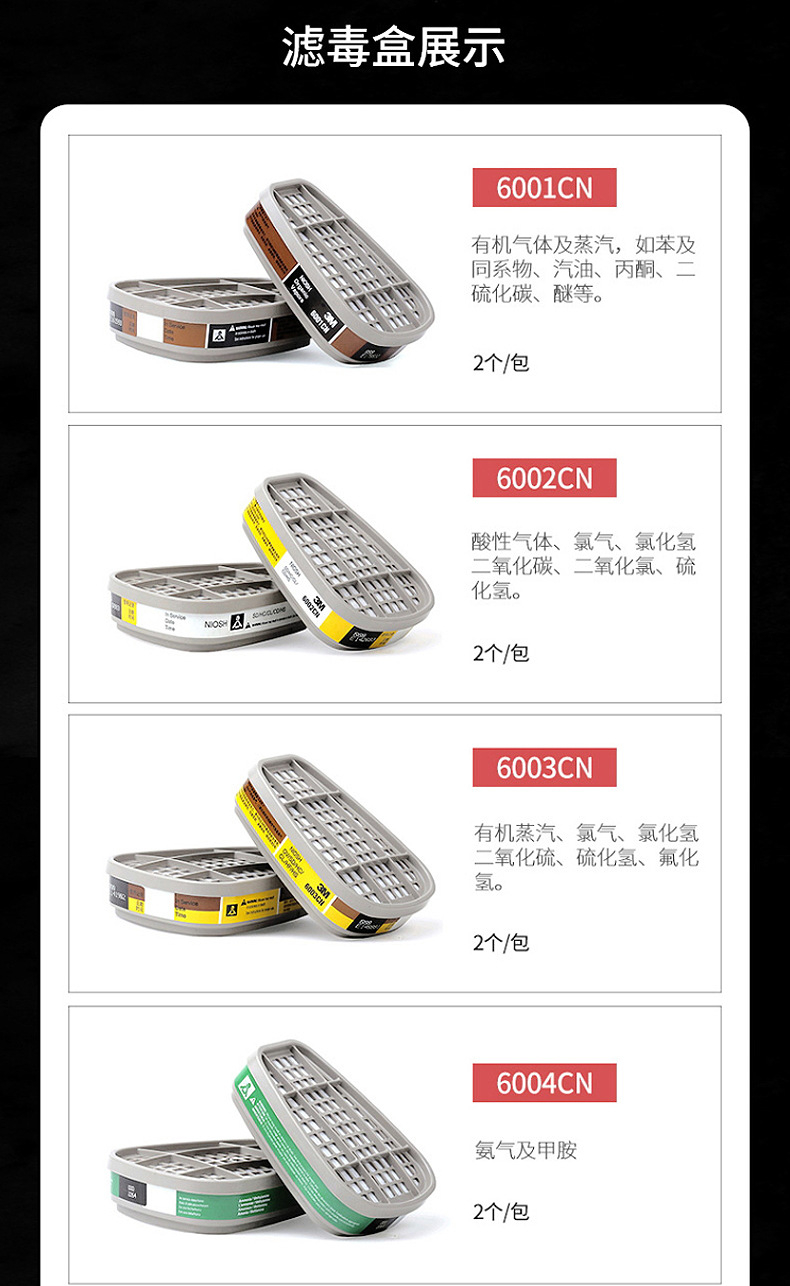 | Modelo | 6200 media máscara 6001CN caja de veneno juego de siete piezas,6200 media máscara 6002CN caja de veneno juego de siete piezas,6200 media máscara 6003CN juego de siete piezas,6200 media máscara 6004CN juego de siete piezas,6200 media máscara 6005CN juego de siete piezas,6200 media máscara 6006CN juego de siete piezas,6200 media máscara 6057 juego de siete piezas |