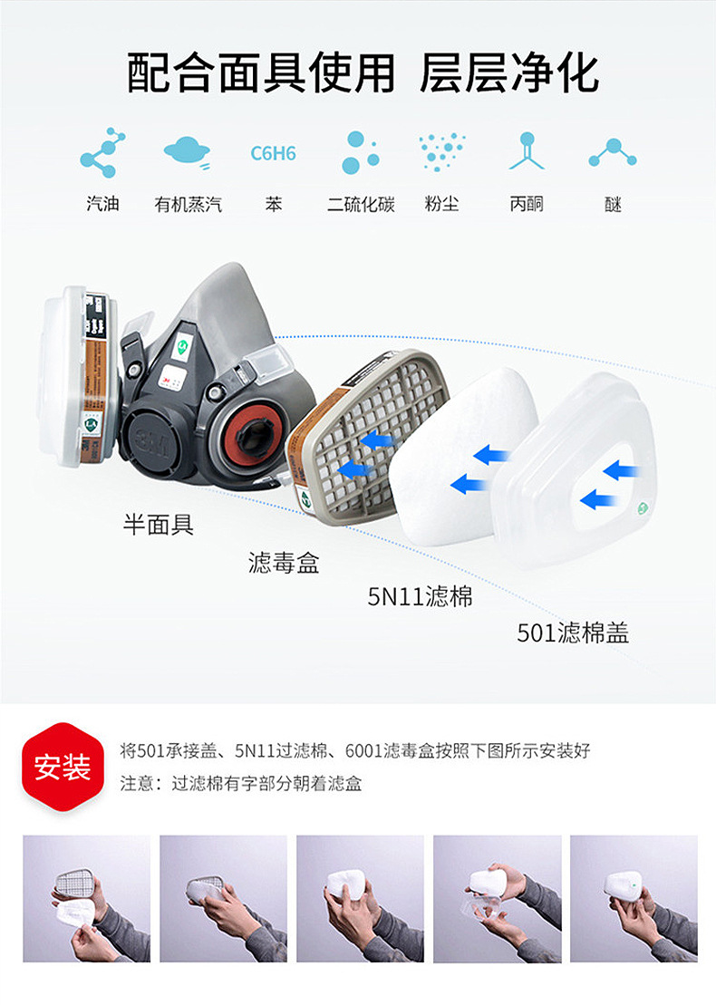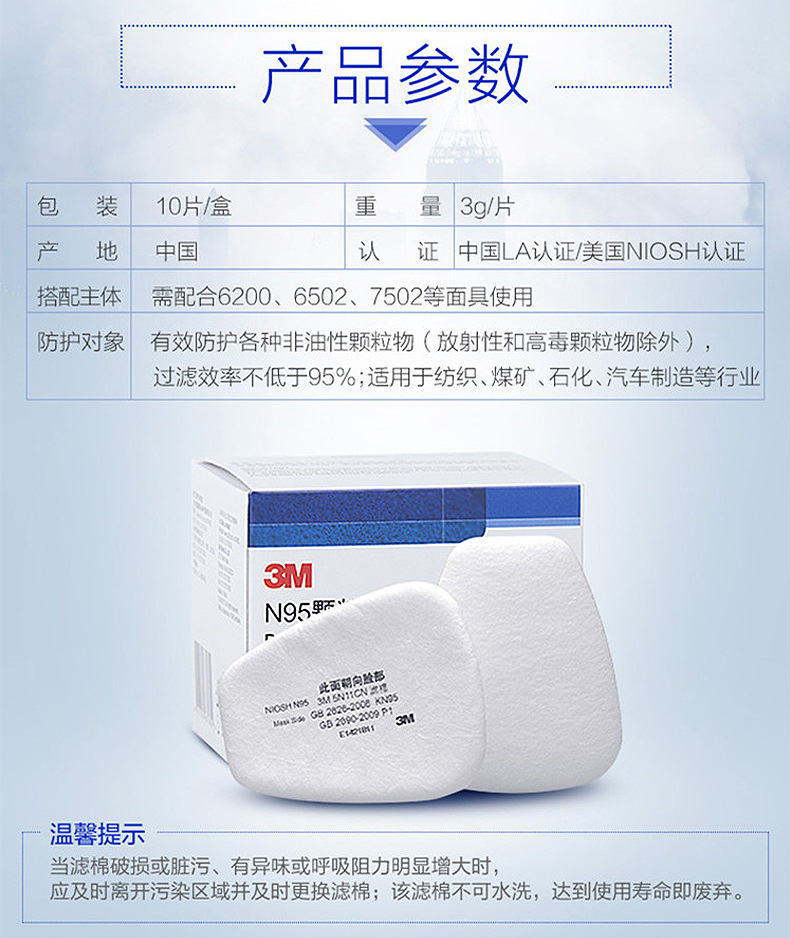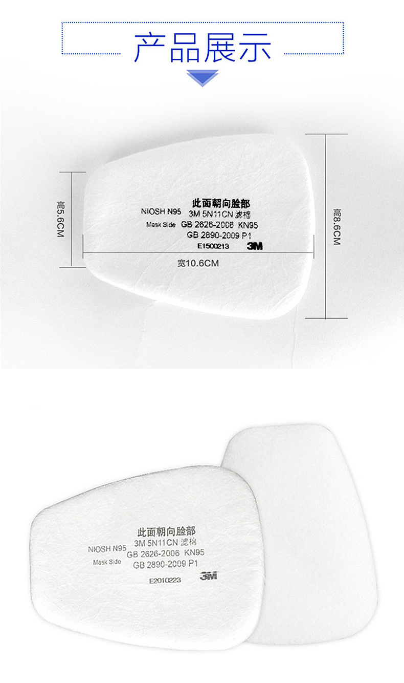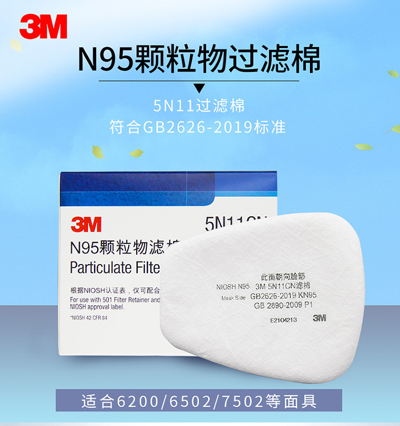 3M 5N11CN filtro de algodón, polvo de partículas industriales, máscara protectora a prueba de polvo, máscara de gas de la serie 6000, material de filtro al por mayor