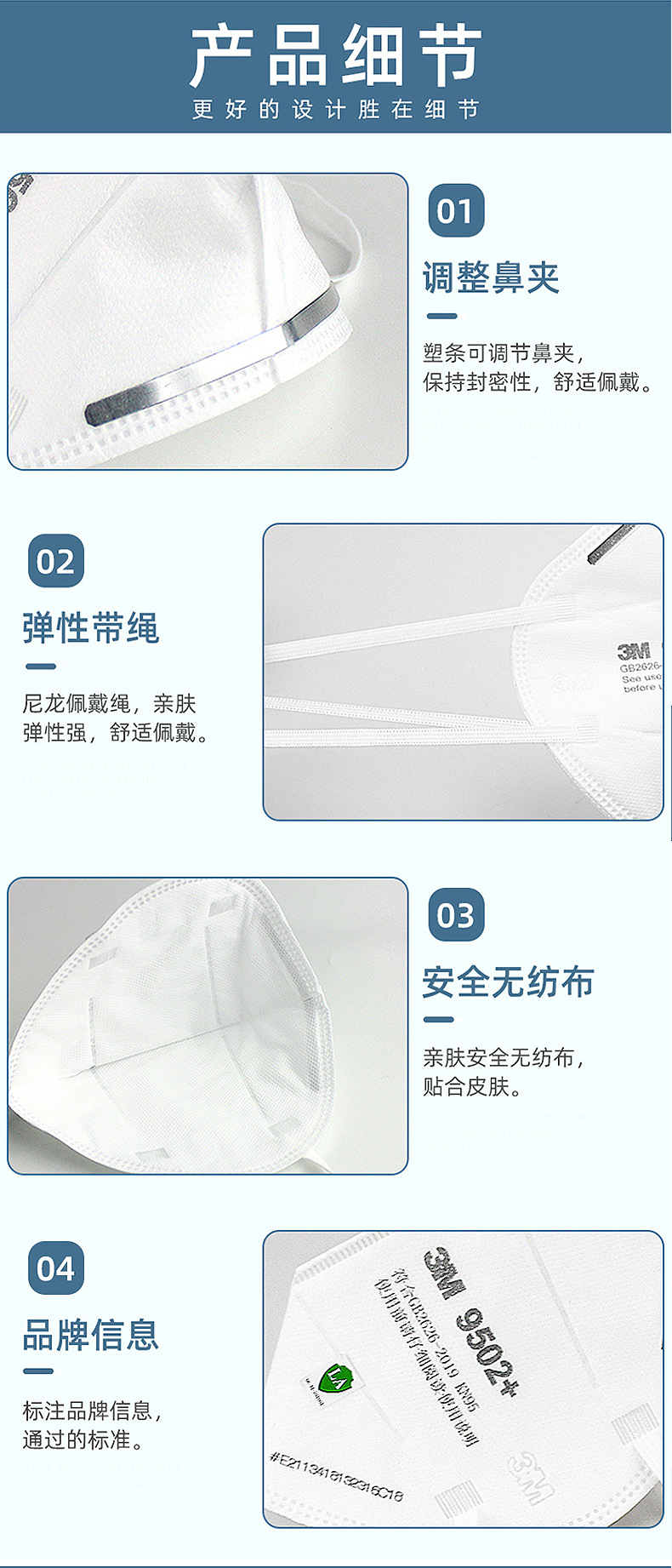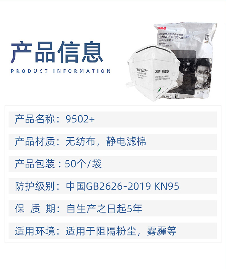 3M 9502 Máscara de partículas a prueba de polvo industrial Instalación de protección ambiental montada en la cabeza Máscara protectora a prueba de polvo 3M KN95