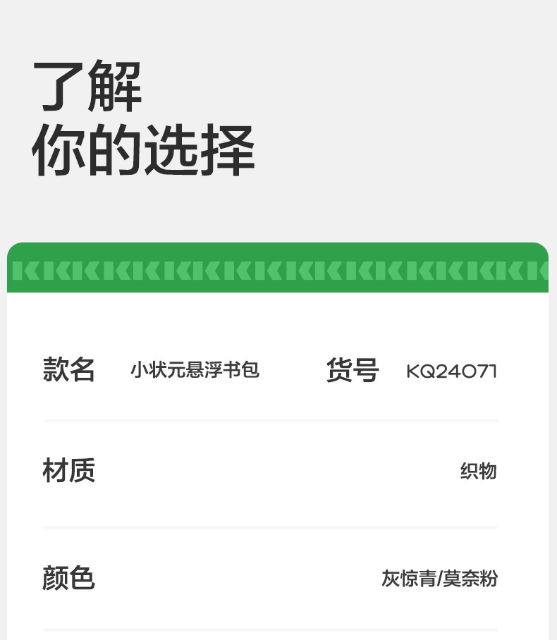 | Color | [Solo mochila] Grey Surprise Green: Tamaño M, [bolso único] gris azul: Tamaño L, [bolso único] polvo Monet: Tamaño M, [bolso único] polvo Monet: Tamaño L, [set de tres piezas] gris azul: Tamaño M (bolso + caja de bolígrafo + bolso de estudio), [conjunto de tres piezas] gris azul: tamaño L (bolso + caja de bolígrafo + bolsa de estudio), [conjunto de tres piezas] Monet: tamaño M (bolso + caja de bolígrafo + bolso de estudio), [conjunto de tres piezas] polvo de Monet: tamaño L (bolso + caja de lápiz + bolsa de estudio), [modelo inteligente] gris: tamaño M, [modelo inteligente] gris: tamaño L, [modelo inteligente] polvo de Monet: tamaño M, [modelo inteligente] polvo de Monet: tamaño L, [modelo inteligente de tres piezas] gris: tamaño M (mochila + caja de lápiz + bolsa de corrección), [Smart 3 Pieces Set] Grey: L (mochila + caja de lápiz + bolsa de corrección), [Smart 3 Pieces Set] Monet: M (mochila + caja de lápiz + bolsa de corrección), [Smart 3 Pieces Set] Monet: L (mochila + caja de lápiz + bolsa de corrección) |