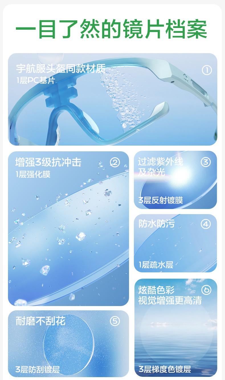 | Color del marco | Azul cola de rata (protección uv400), polvo de Begonia (resistencia al impacto de nivel 3), amarillo madera (no se rompe y se torce constantemente) |