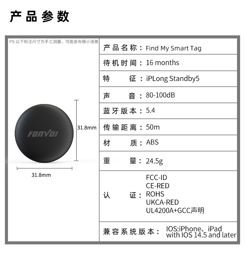 | Número de artículo | Dispositivo anti-pérdida de Apple findmy |