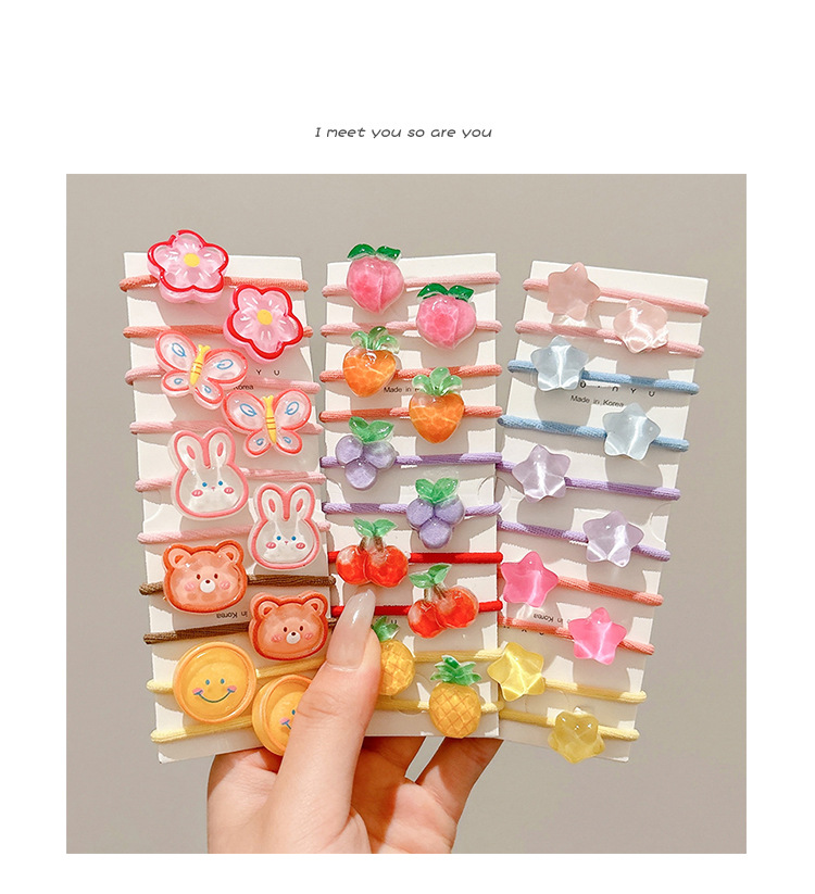 | Colores | 1 #10 combinaciones de flores de cerezo (el diámetro exterior de la banda de goma es de aproximadamente 3.5cm),2 #10 combinaciones de fresas heladas (el diámetro exterior de la banda de goma es de aproximadamente 3,5 cm),3 #10 combinaciones de estrellas de cinco puntas (el diámetro exterior de la banda de goma es de aproximadamente 3,5 cm,4 #10 combinaciones de flores de mariposa (el diámetro exterior de la banda de goma es de aproximadamente 3,5 cm) |