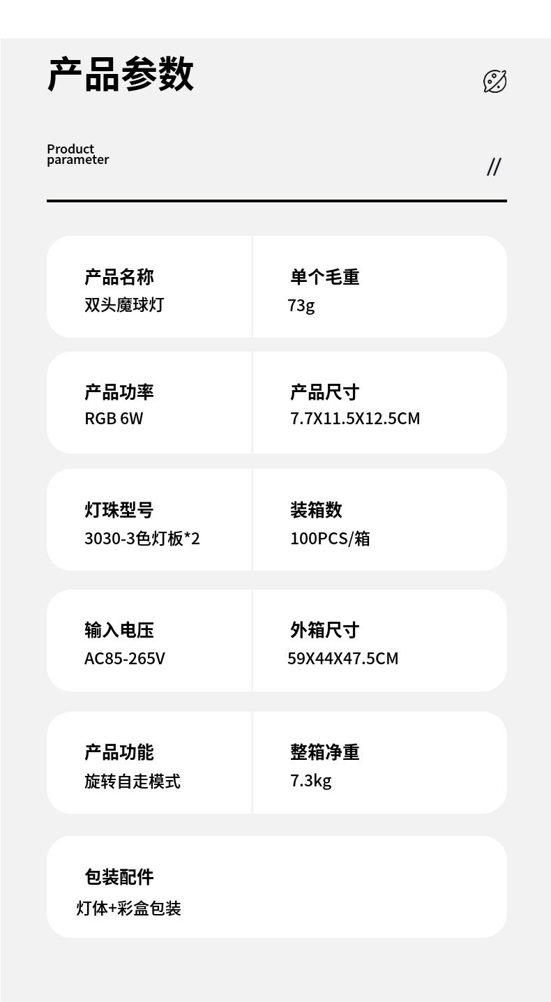 | Especificaciones | Lámpara de bola mágica de doble cabeza |