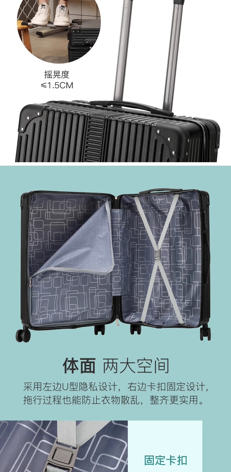 Nuevo marco de aluminio de gran capacidad caja de la carretilla rueda universal de alto aspecto maleta de viaje 24 pulgadas Contraseña de bloqueo de embarque caso
