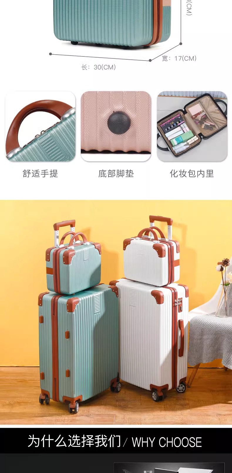 Pequeño equipaje de 18 pulgadas para mujeres pequeño estuche de carro ligero nuevo cuadro de contraseña de embarque mudo rueda universal