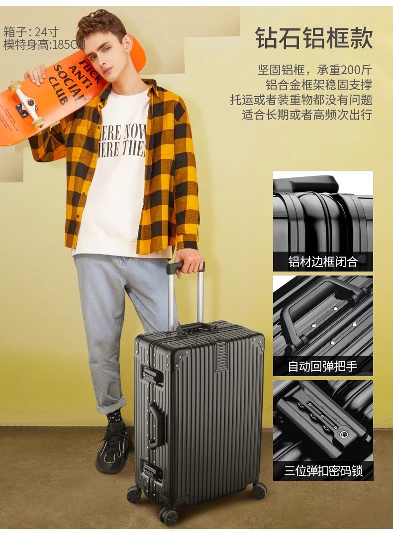 Maleta de aluminio con marco nuevo, 24 pulgadas, con ruedas universales, maleta de 26 pulgadas para hombre y mujer, 20 pulgadas, con contraseña para embarque, maleta de cuero de 28 pulgadas