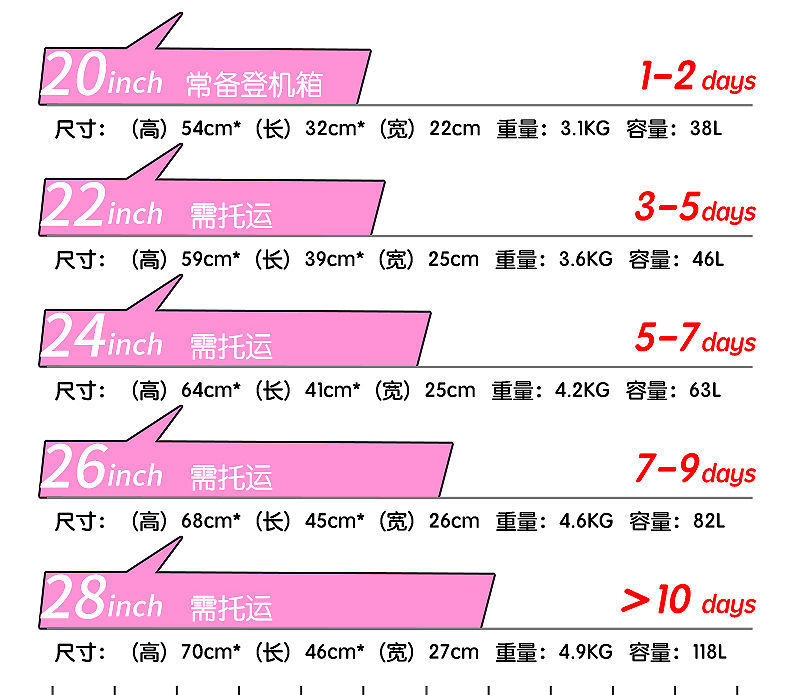 | Tamaño | 20 pulgadas, 22 pulgadas, 24 pulgadas, 26 pulgadas, 28 pulgadas |