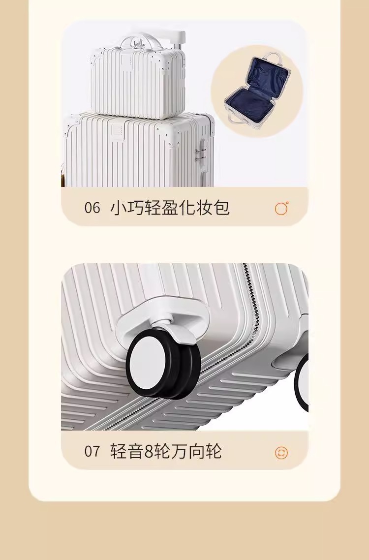 | Color | 时尚单箱【谷物白】简易内置,时尚单箱【天空蓝】简易内置,时尚单箱【浪漫粉】简易内置,时尚单箱【星耀黑】简易内置,时尚单箱【星空银】简易内置,时尚单箱【玫瑰金】简易内置,时尚单箱【墨竹绿】简易内置,时尚单箱【白+黑】简易内置,时尚单箱【白+玫】简易内置,时尚拉链【谷物白】隔层内里,时尚拉链【天空蓝】隔层内里,时尚拉链【浪漫粉】隔层内里,时尚拉链【星耀黑】隔层内里,时尚拉链【星空银】隔层内里,时尚拉链【玫瑰金】隔层内里,时尚拉链【墨竹绿】隔层内里,时尚拉链【白+黑】隔层内里,时尚拉链【白+玫】隔层内里,USB水杯架【可可白】隔层内置,USB水杯架【可可黑】隔层内置,USB水杯架【可可蓝】隔层内置,USB水杯架【可可粉】隔层内置,USB水杯架【可可绿】隔层内置,USB水杯架【谷物白】隔层内置,USB水杯架【天空蓝】隔层内置,USB水杯架【浪漫粉】隔层内置,USB水杯架【星耀黑】隔层内置,USB水杯架【星空银】隔层内置,USB水杯架【玫瑰金】隔层内置,USB水杯架【墨竹绿】隔层内置,USB水杯架【白+黑】隔层内置,USB水杯架【白+玫】隔层内置,USB水杯架【中国红】隔层内里,复古铝框款【皓月白】,复古铝框款【曜石黑】,复古铝框款【星河银】,复古铝框款【玫瑰金】,复古铝框款【墨绿色】,复古铝框款【白/黑】,复古铝框款【白/玫】,复古铝框款【中国红】,子母箱【谷物白】简易内置,子母箱【天空蓝】简易内置,子母箱【浪漫粉】简易内置,子母箱【星耀黑】简易内置,子母箱【星空银】简易内置,子母箱【玫瑰金】简易内置,子母箱【墨竹绿】简易内置,子母箱【白+黑】简易内置,子母箱【白+玫】简易内置,子母/拉链【谷物白】隔层内里,子母/拉链【天空蓝】隔层内里,子母/拉链【浪漫粉】隔层内里,子母/拉链【星耀黑】隔层内里,子母/拉链【星空银】隔层内里,子母/拉链【玫瑰金】隔层内里,子母/拉链【墨竹绿】隔层内里,子母/拉链【白+黑】隔层内里,子母/拉链【白+玫】隔层内里 |