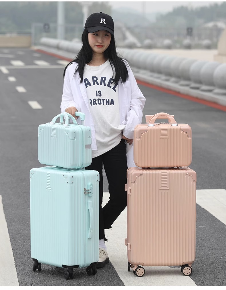 Pequeño equipaje fresco de gran capacidad multifuncional maleta color sólido estudiante trolley mudo universal rueda contraseña caja