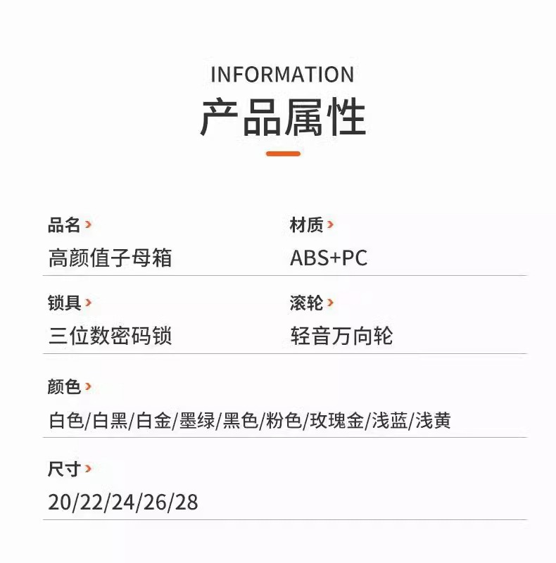 En nombre de la maleta con tirante ancho, embarque, viaje femenino de 20 pulgadas, rueda universal silenciosa de alto valor, caja con ruedas para PC de 24 pulgadas