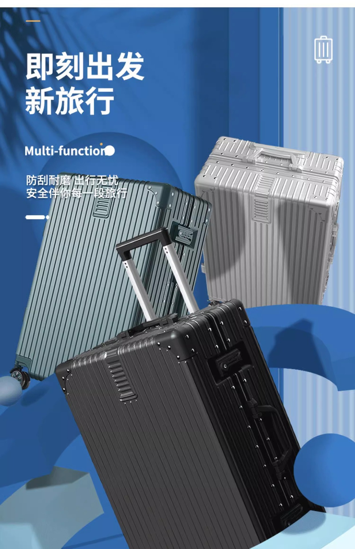 Multi-funcional de equipaje marco de aluminio apertura frontal cubierta abierta caja de la carretilla caja de equipaje caso de contraseña caso de embarque de 20 pulgadas al por mayor