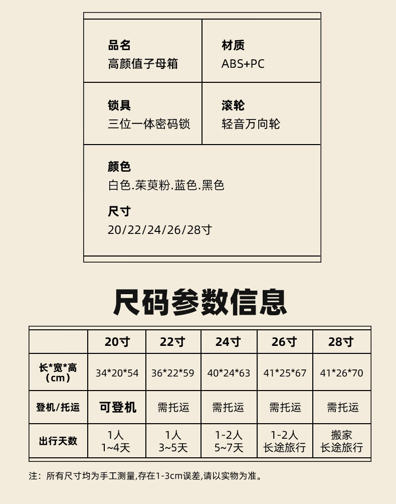 Equipaje de alto valor facial para estudiantes de 24 pulgadas con ruedas universales de 20 pulgadas con contraseña de embarque, maleta duradera