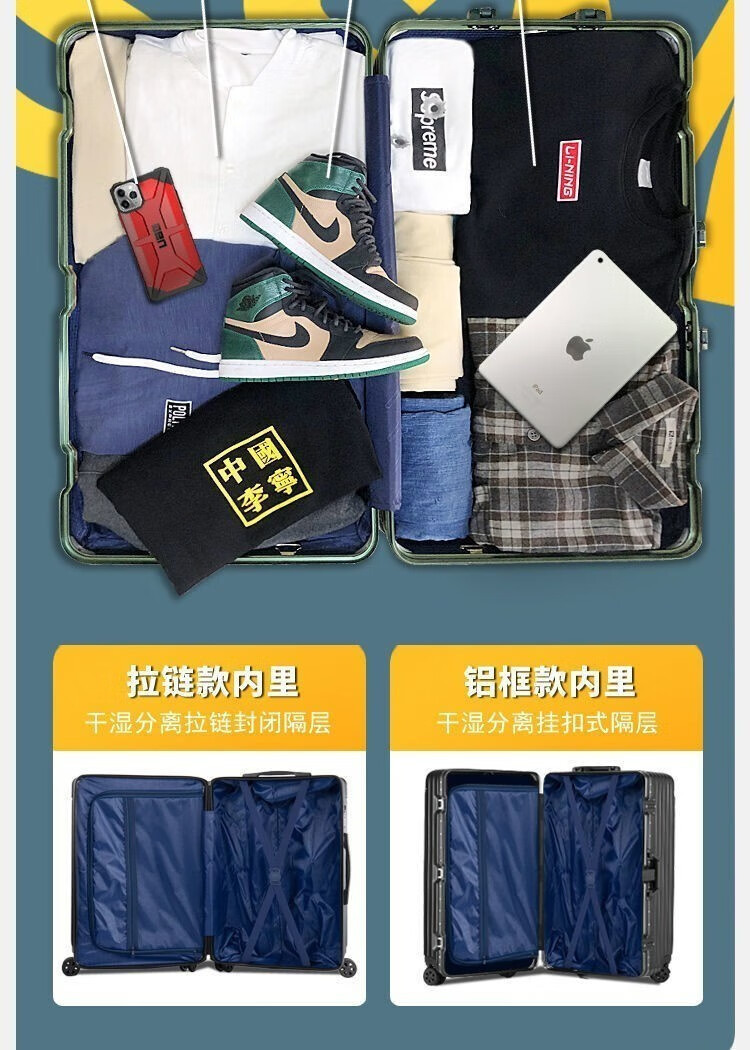 [Fábrica de selección estricta] 20 maletas de aluminio, maletas de tracción, 24 maletas de estudiantes, hombres y mujeres, gran capacidad 28