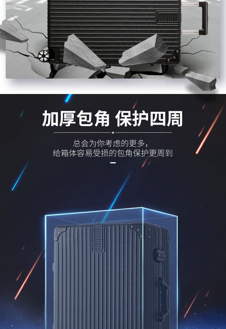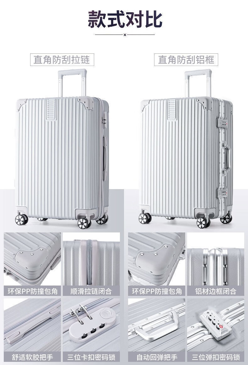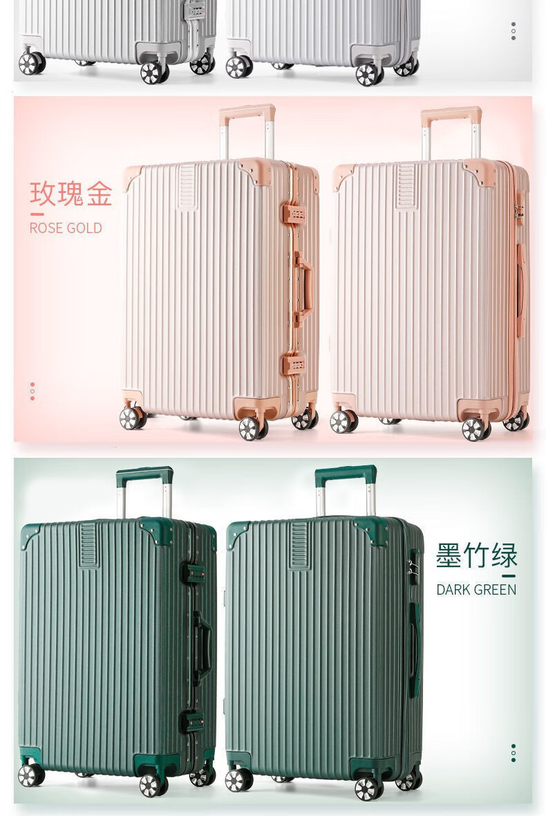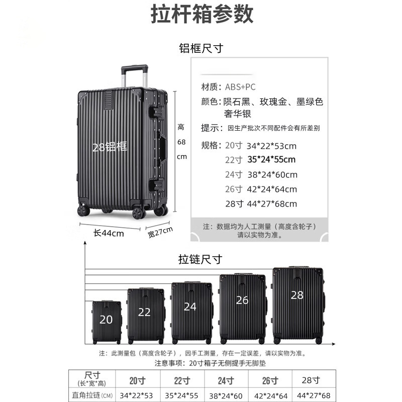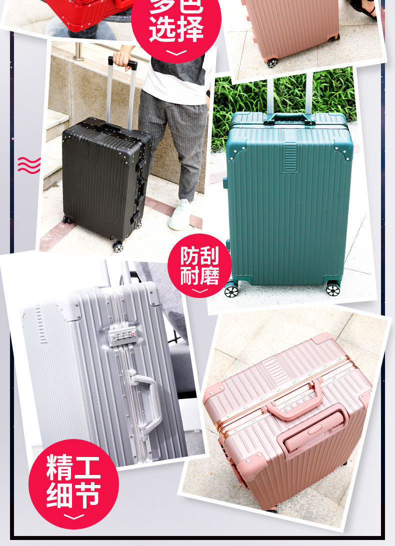 Marco de aluminio cremallera barra de tracción contraseña maleta multifuncional para hombres y mujeres estudiantes rueda universal silenciosa duradera