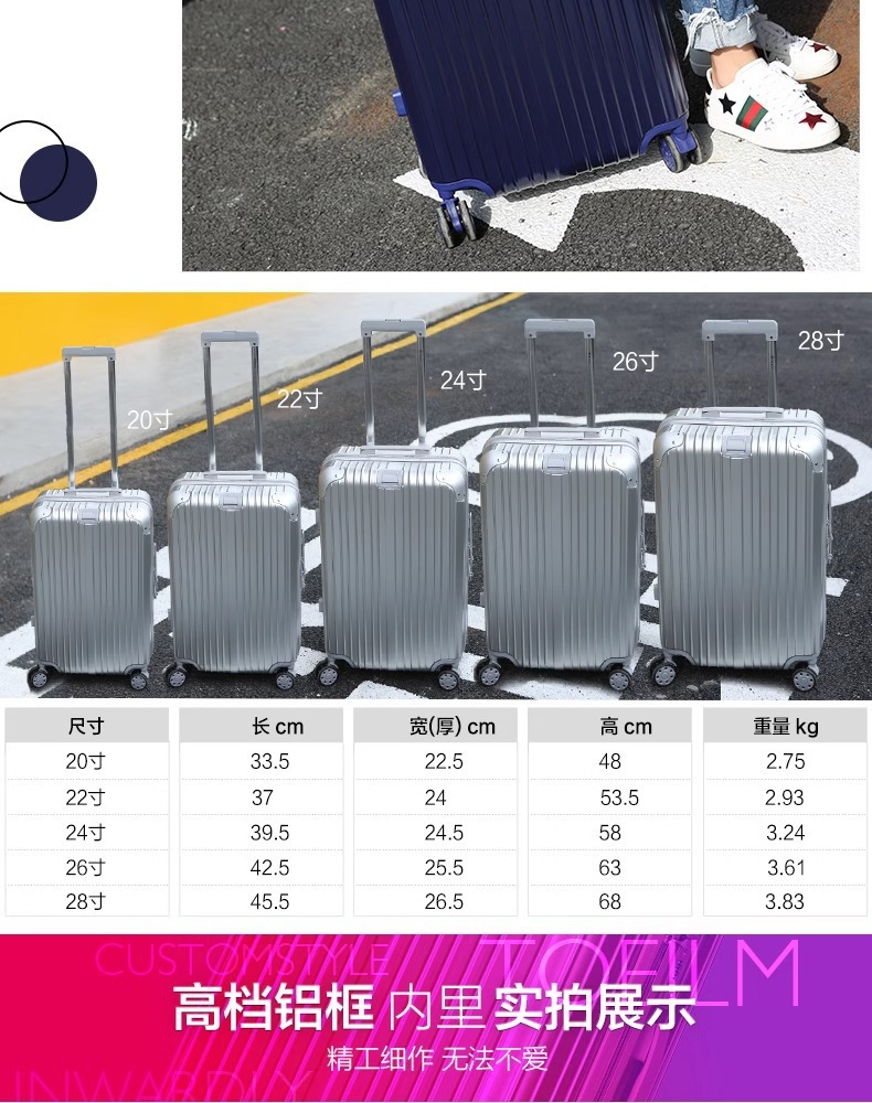 Maleta de viaje de aluminio marco 20 rueda universal 24 maleos y mujeres maletas 26 caja de cifrado gran capacidad 29 pulgadas