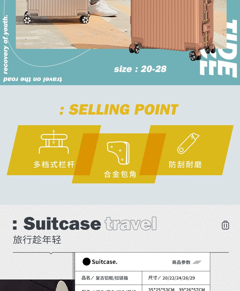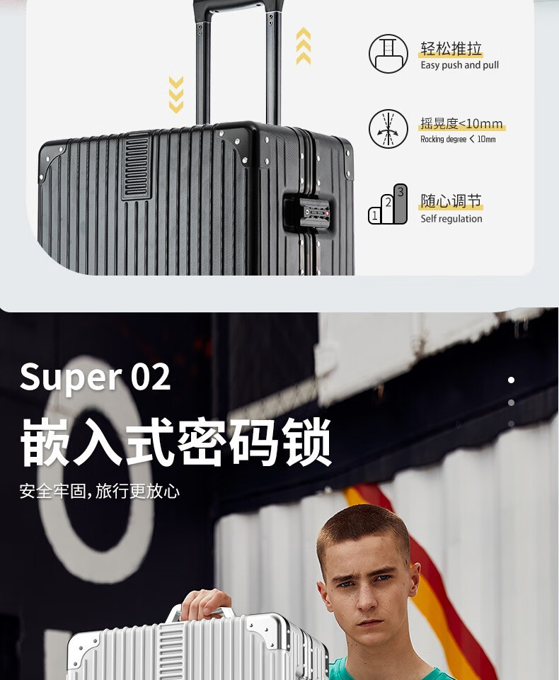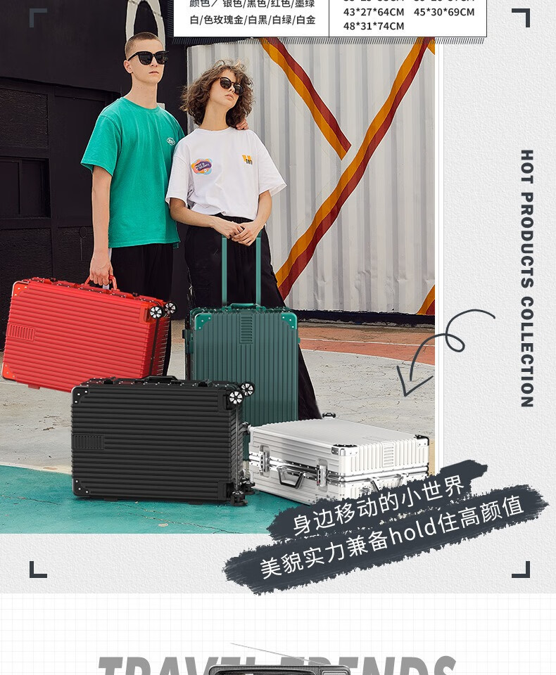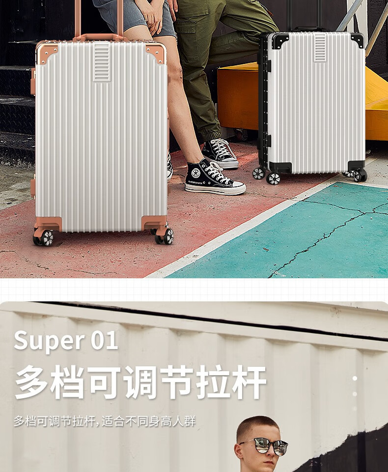 [Fábrica de selección estricta] maleta de aluminio de 20 pulgadas, ruedas universales de 24 pulgadas, maletas duraderas para estudiantes masculinos y femeninos