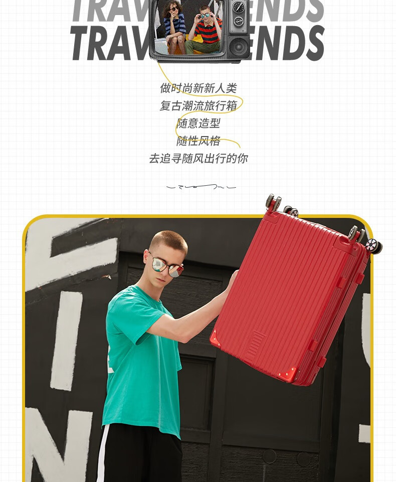 Maleta de mujer red retro 20 pulgadas pequeña caja de viaje 24 pulgadas maleta de estudiantes ruedas silenciosas
