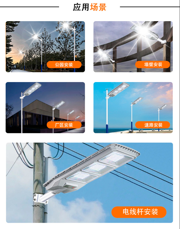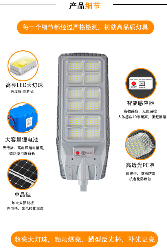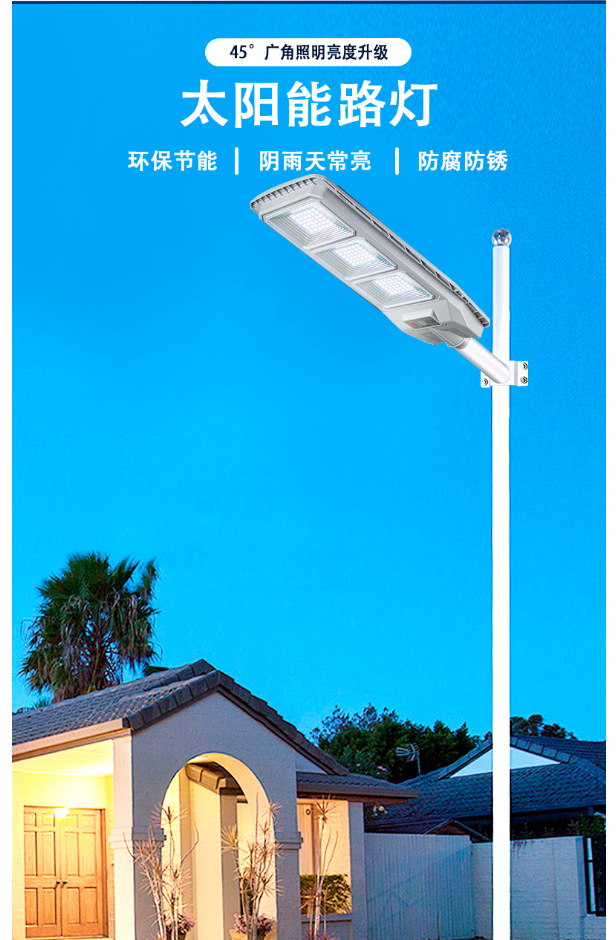 Luz de calle solar integrada transfronteriza Luz de inducción impermeable al aire libre Cabeza de lámpara de carretera de ingeniería solar de alta potencia led