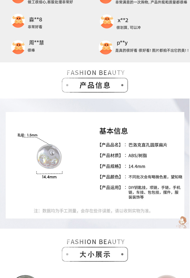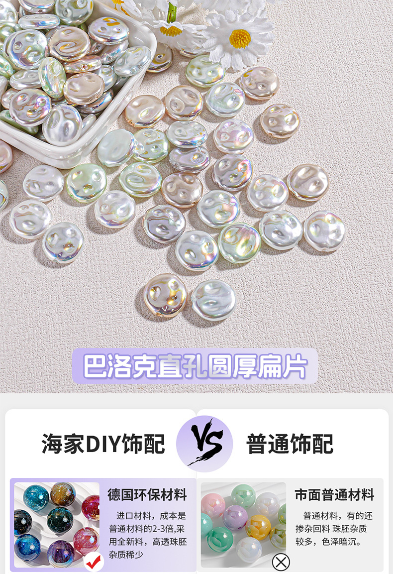 | Número de artículo | MY43 pieza plana gruesa redonda de agujero recto barroco 14MM |