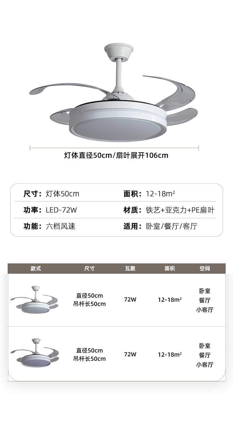 | Tipo de luz del ventilador | Lámpara de ventilador invisible |