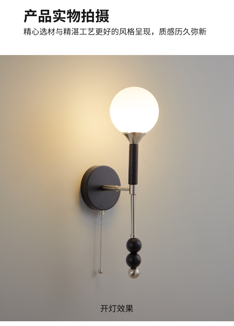 Lámpara de pared de estante de cabecera de viento de mediana antigüedad, sensación premium, Bauhaus, grano de madera de durazno, sala de estar retro, dormitorio, iluminación de pared de fondo