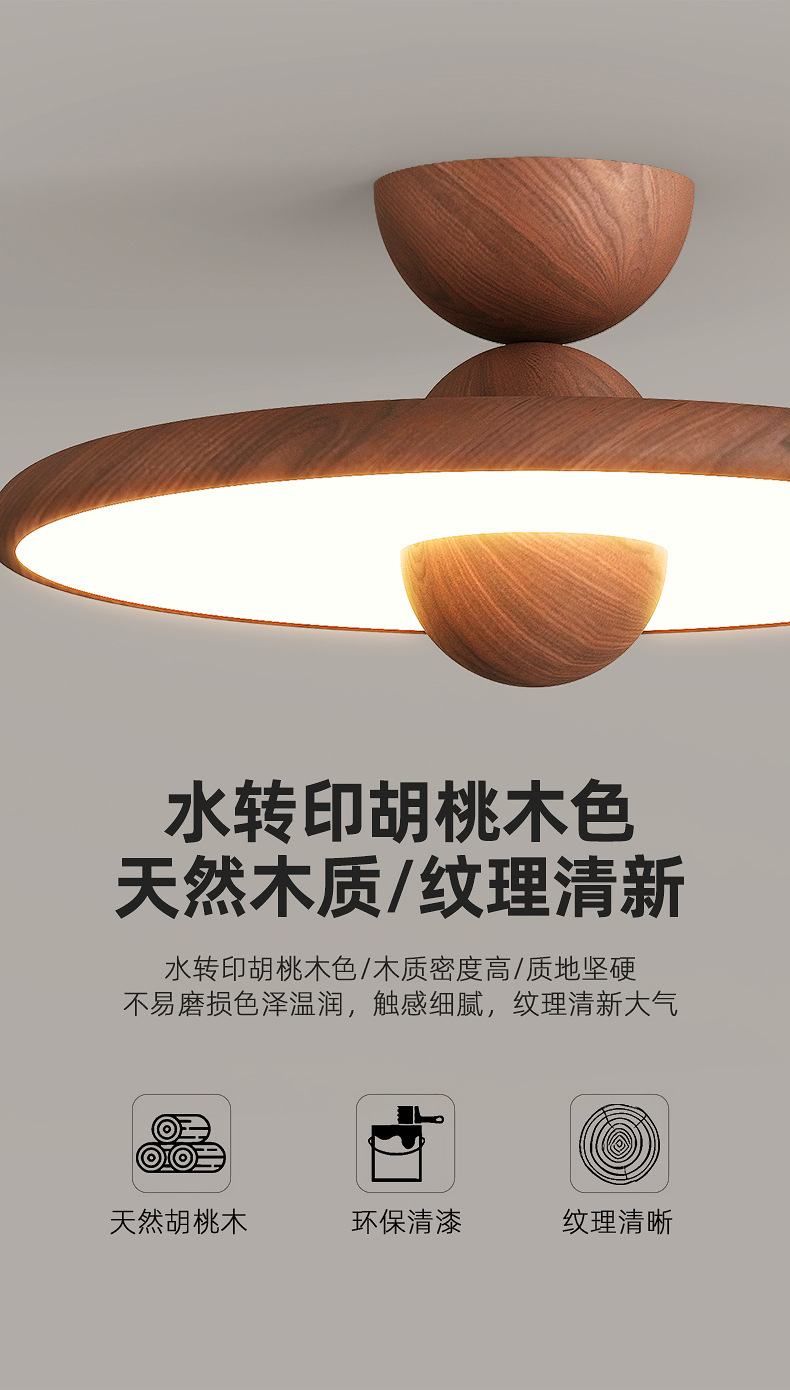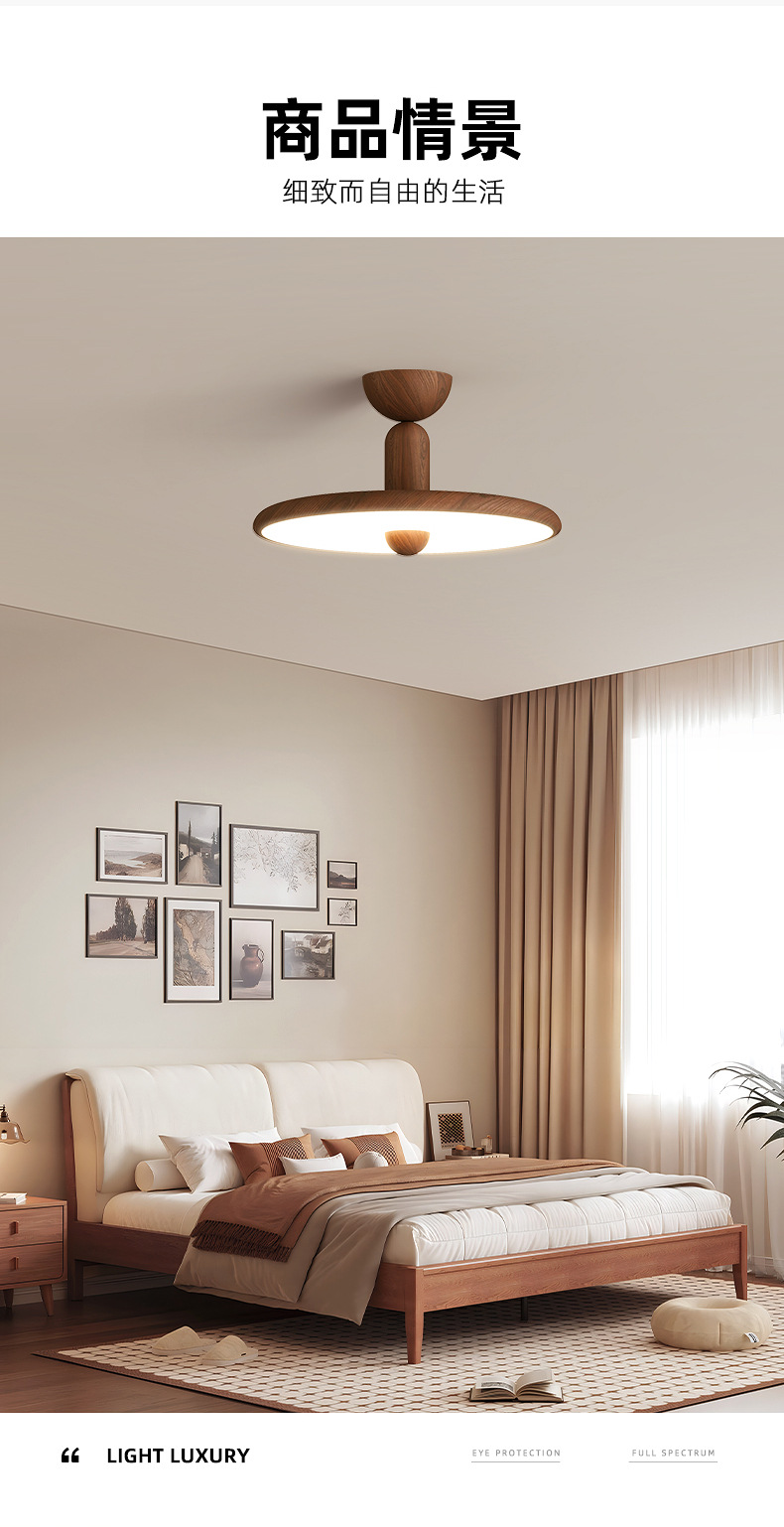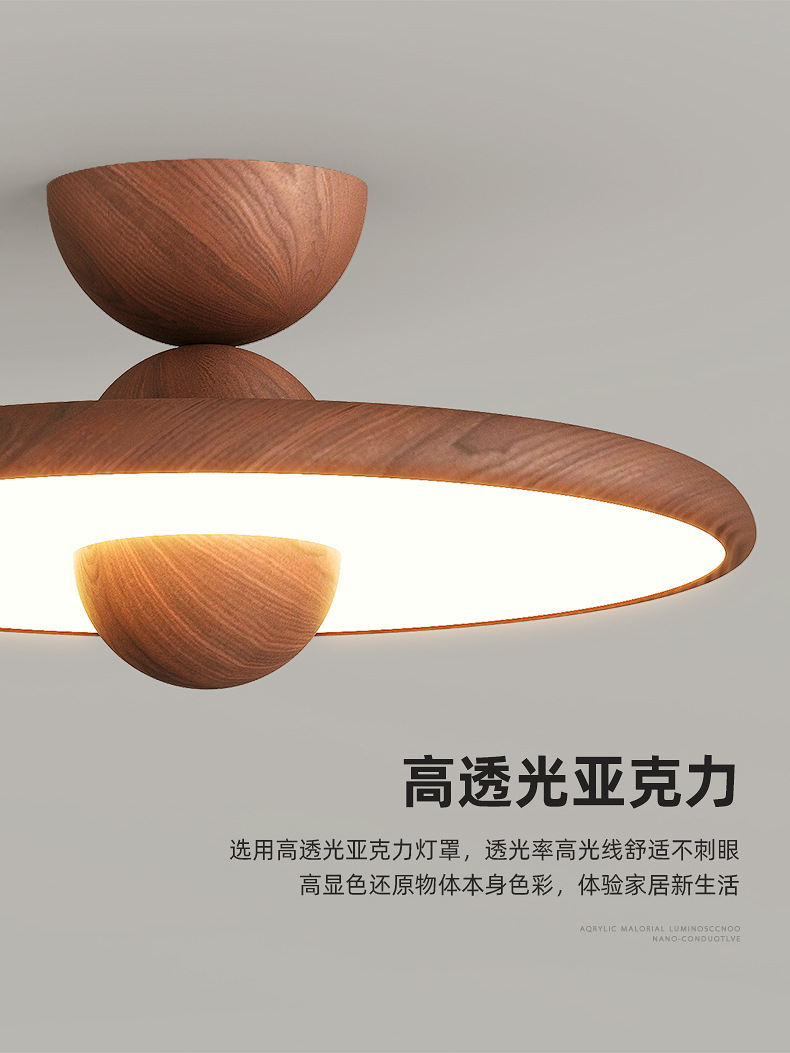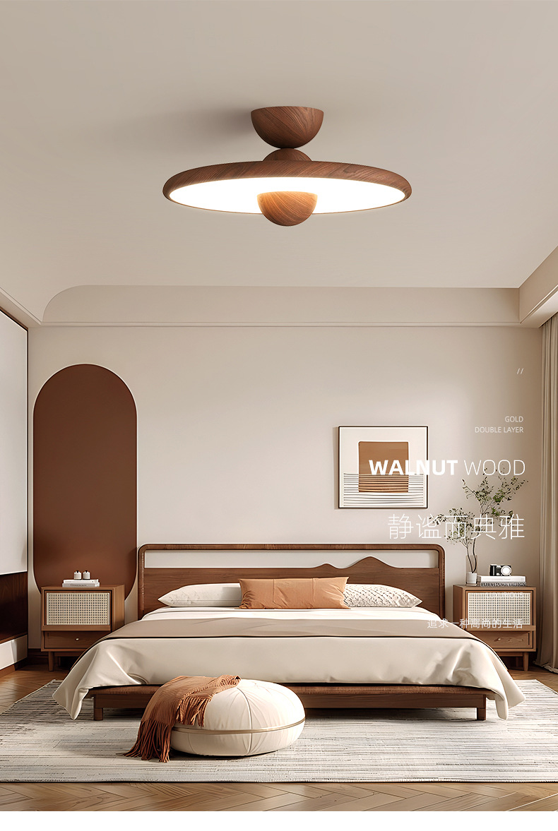 Lámpara de dormitorio, moderno y simple, color de nogal, candelabro de restaurante de estilo antiguo, lámpara de techo de dormitorio principal de espectro completo
