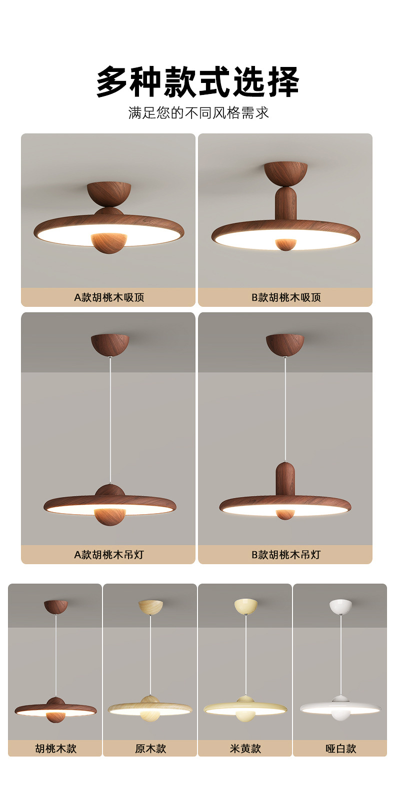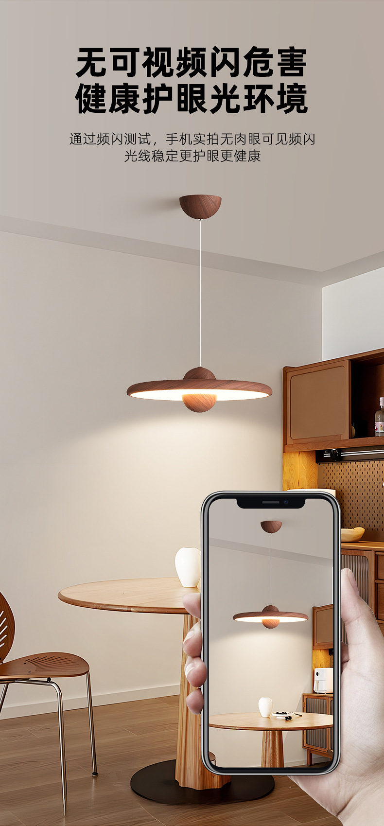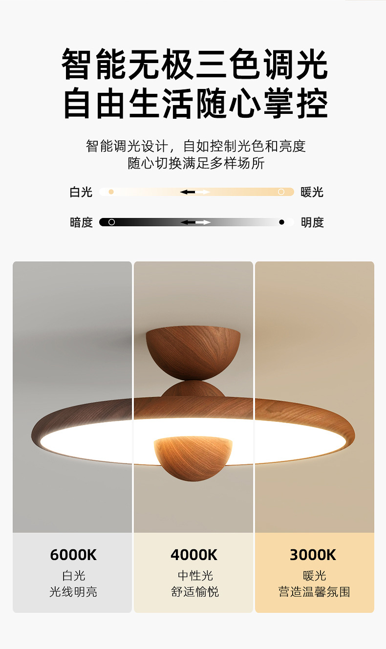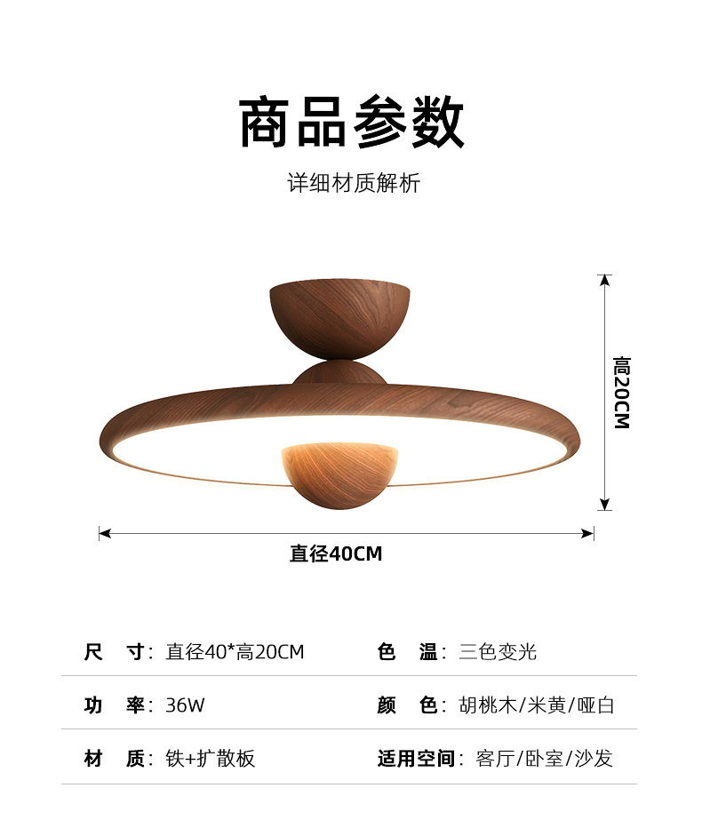 Lámpara de dormitorio, moderno y simple, color de nogal, candelabro de restaurante de estilo antiguo, lámpara de techo de dormitorio principal de espectro completo