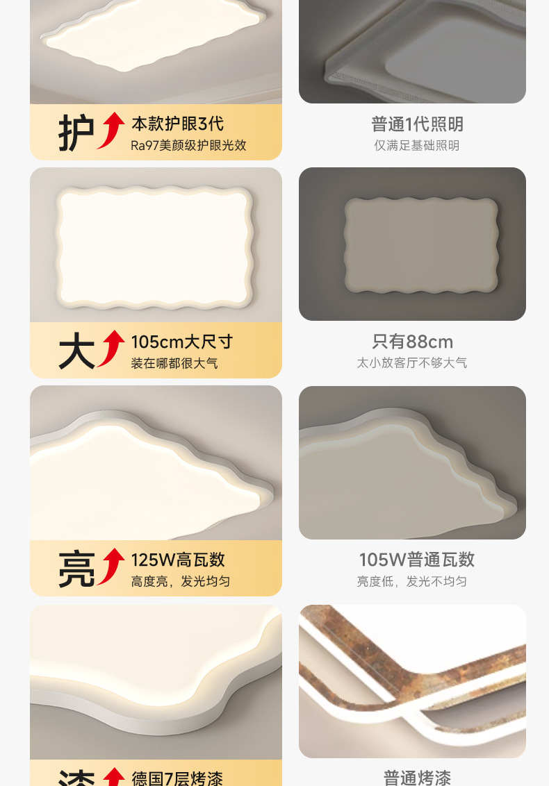 Luz principal de la sala de estar de viento de crema moderna y creativa onda de atmósfera lámpara de techo lámpara de protección de ojos toda la casa 2025 nueva
