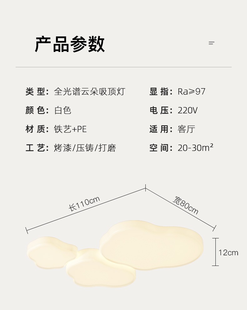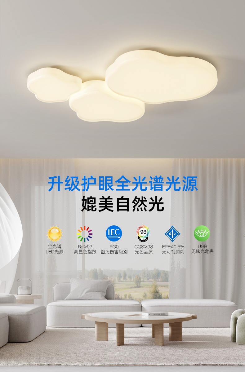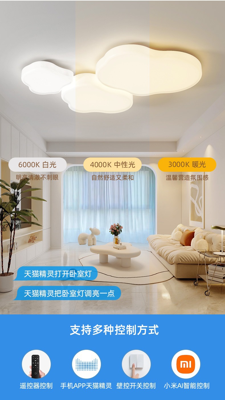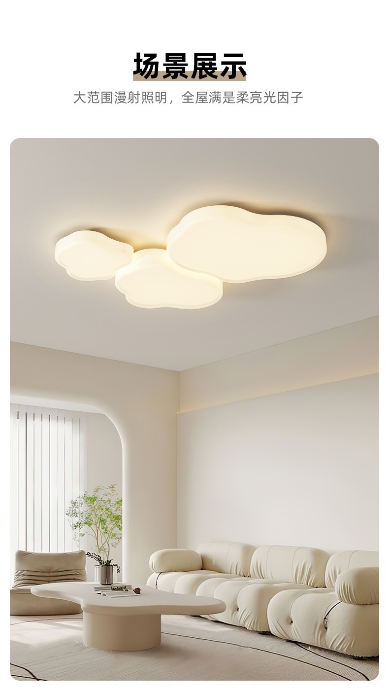 Luz de techo de nubes en 2025, nueva y moderna atmósfera simple y crema de viento lámpara de sala de estar Zhongshan paquete de lámparas para el hogar