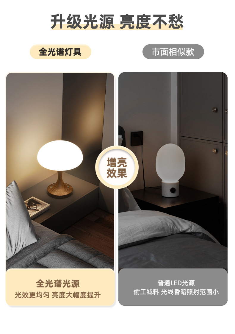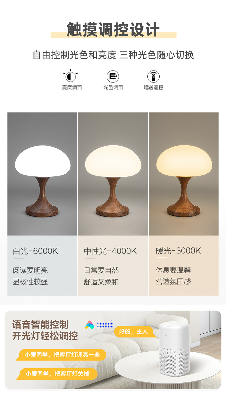 Espectro de luz completo lámpara de dormitorio de melocotón de madera Hu 20 * 24cm - luz tricolor, espectro de luz completo lámpara de dormitorio blanco 20 * 24cm - luz tricolor, espectro completo lámpara de dormitorio negro 20 * 24cm - luz tricolor