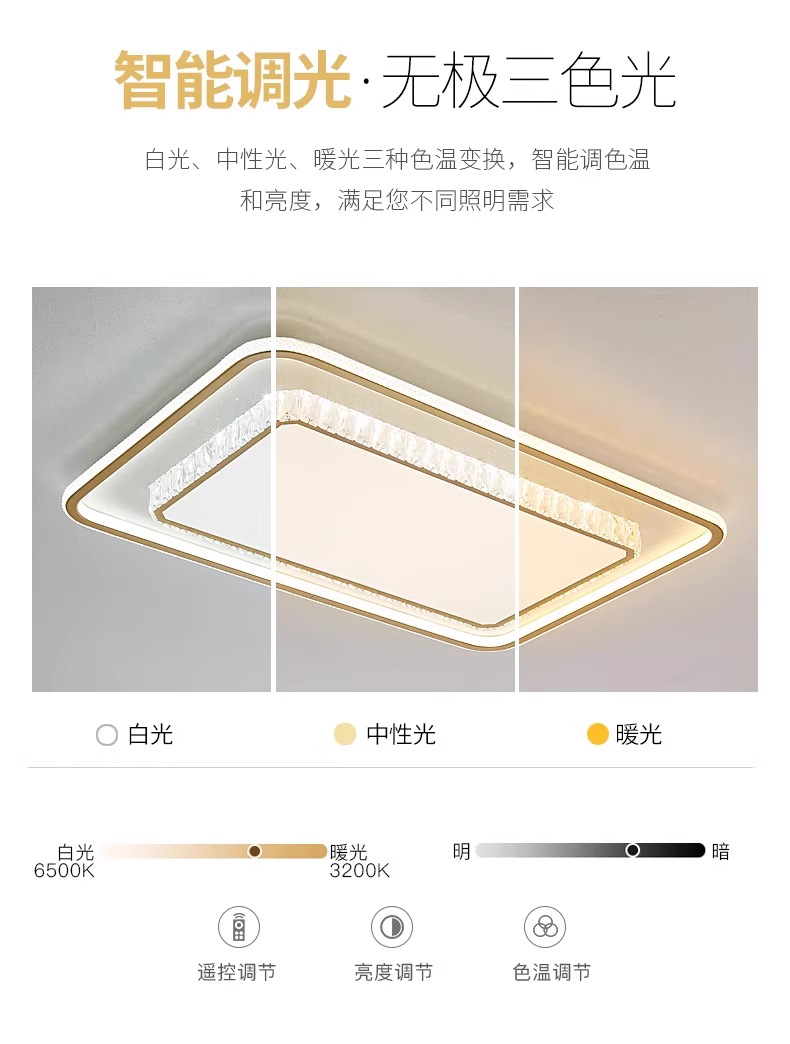 | Color de la luz | Iluminación de tres colores, atenuación sin polos, genio Tmall, soporte para el control de los compañeros de clase de amor pequeño |