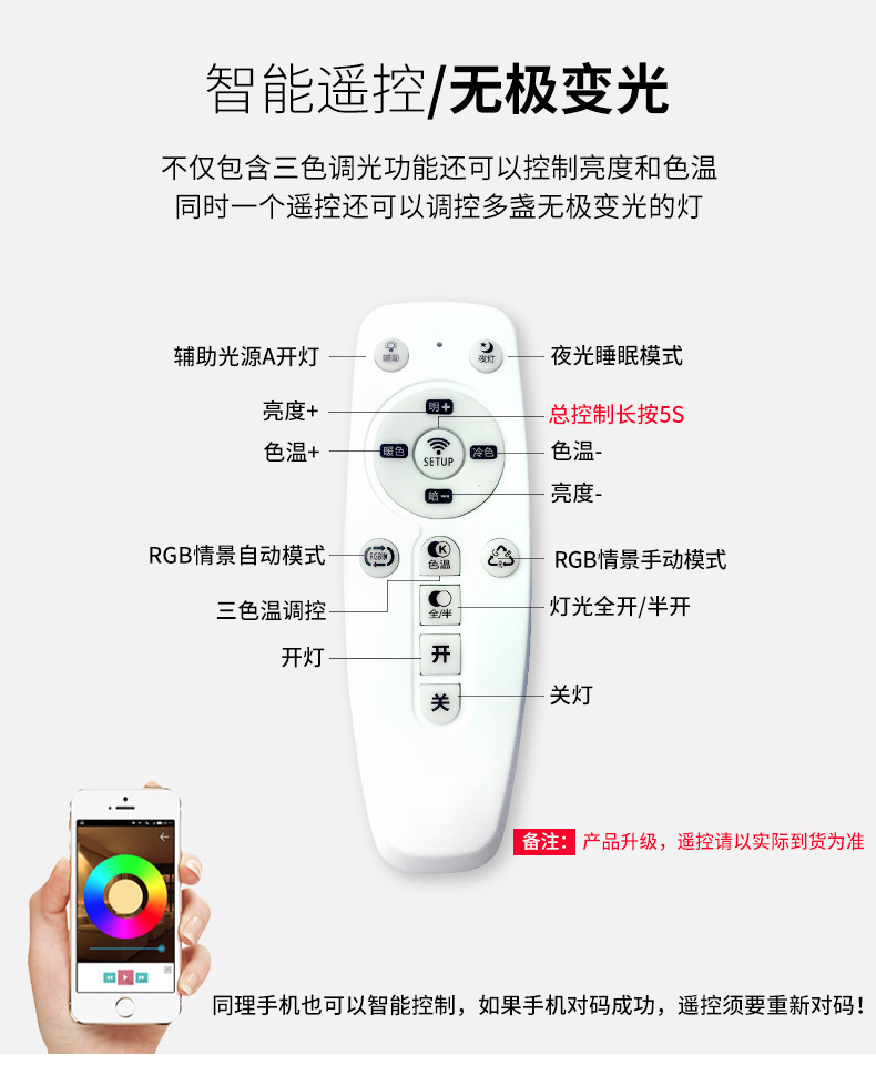 | Potencia de la fuente de luz | Luz cálida monocromática,Atenuación de tres colores,Luz variable de espectro completo de tres colores,Infinitamente regulable,Luz de atenuación infinita de espectro completo,Elfo pequeño,Apoya el control de Xiao Ai,Soporte de espectro completo para el control de Xiao Ai |