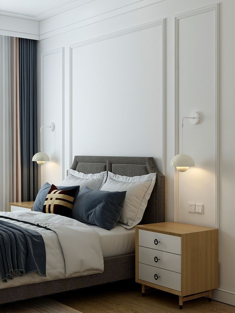 Bóveda de cama de dormitorio, lámpara de pared, protección ocular, sala de estudio, pared de fondo, nórdico, ambiente de estilo crema francés minimalista moderno