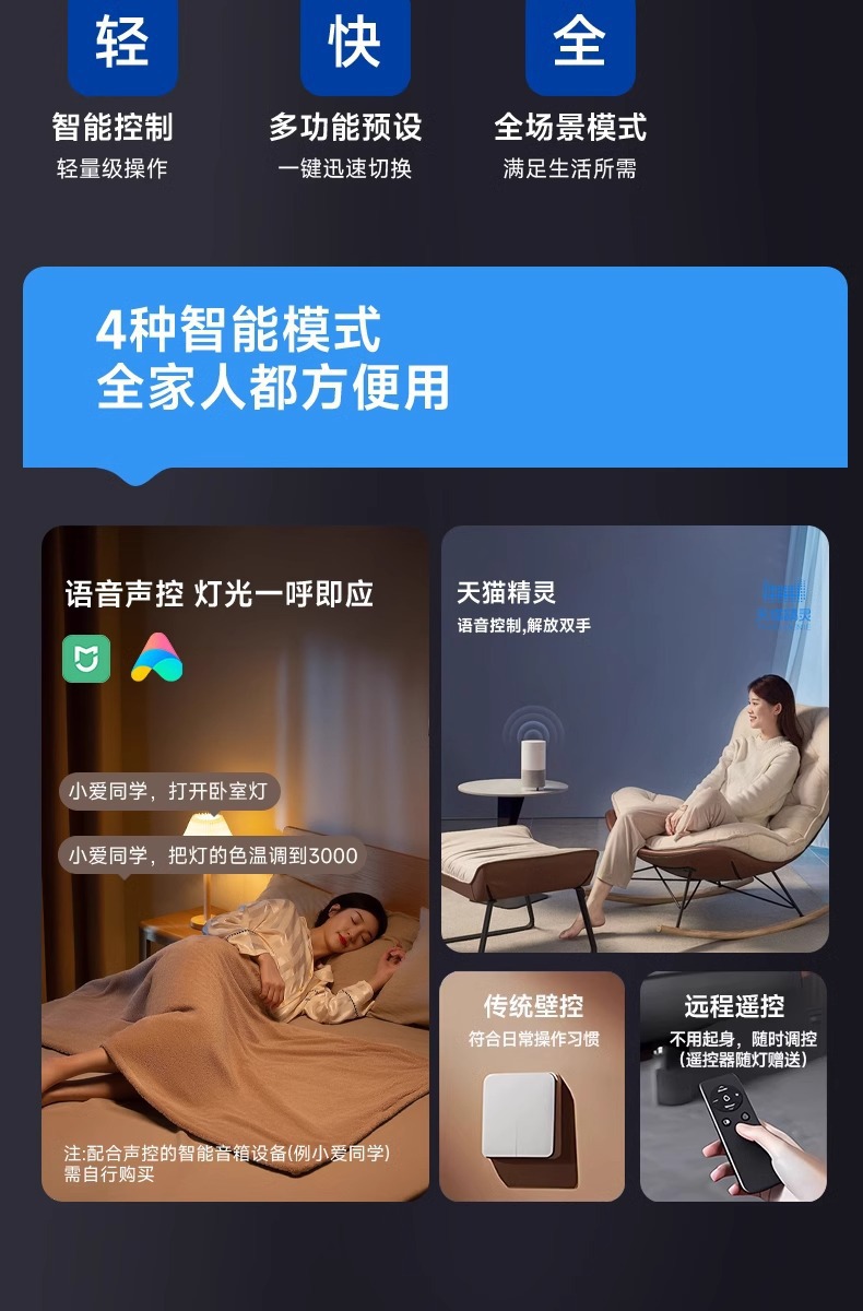 | Potencia de la fuente de luz | Luz variable de tres colores [protección ocular de espectro completo],Atenuación sin extremos Tmall [protección ocular de espectro completo],Admite control por voz Xiao Ai para atenuación continua [Protección ocular de espectro completo],Apple Pass 【Protección ocular de espectro completo】,Luz variable de tres colores [cuentas de lámpara Preh importadas de EE. UU.],Atenuación sin extremos Tmall [cuentas de lámpara Preh importadas de EE. UU.],Admite control por voz Xiao Ai para atenuación continua. [LED Bridgelux importados de EE. UU.],Apple Pass [Cuentas de lámpara Preh importadas de EE. UU.] |