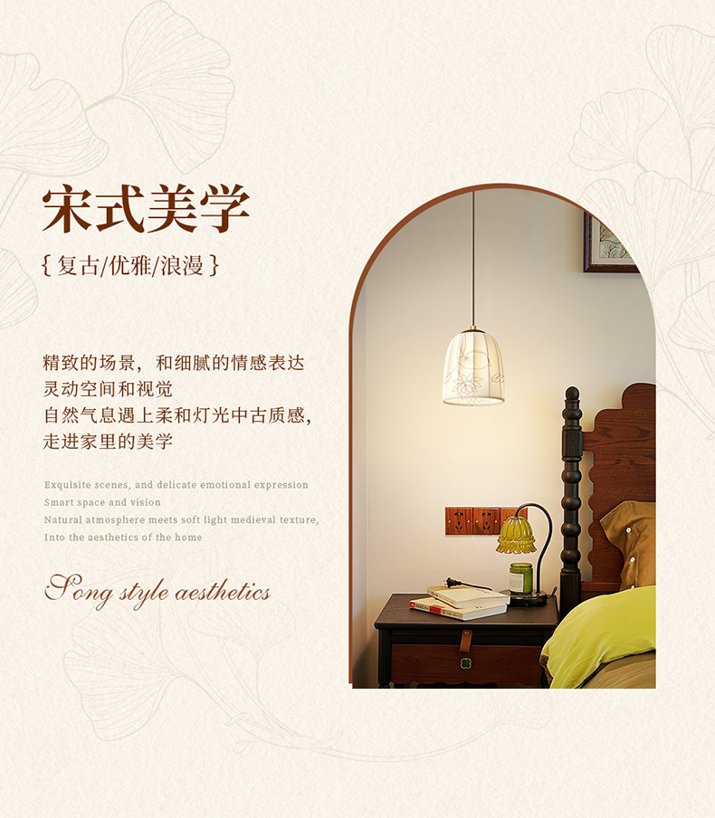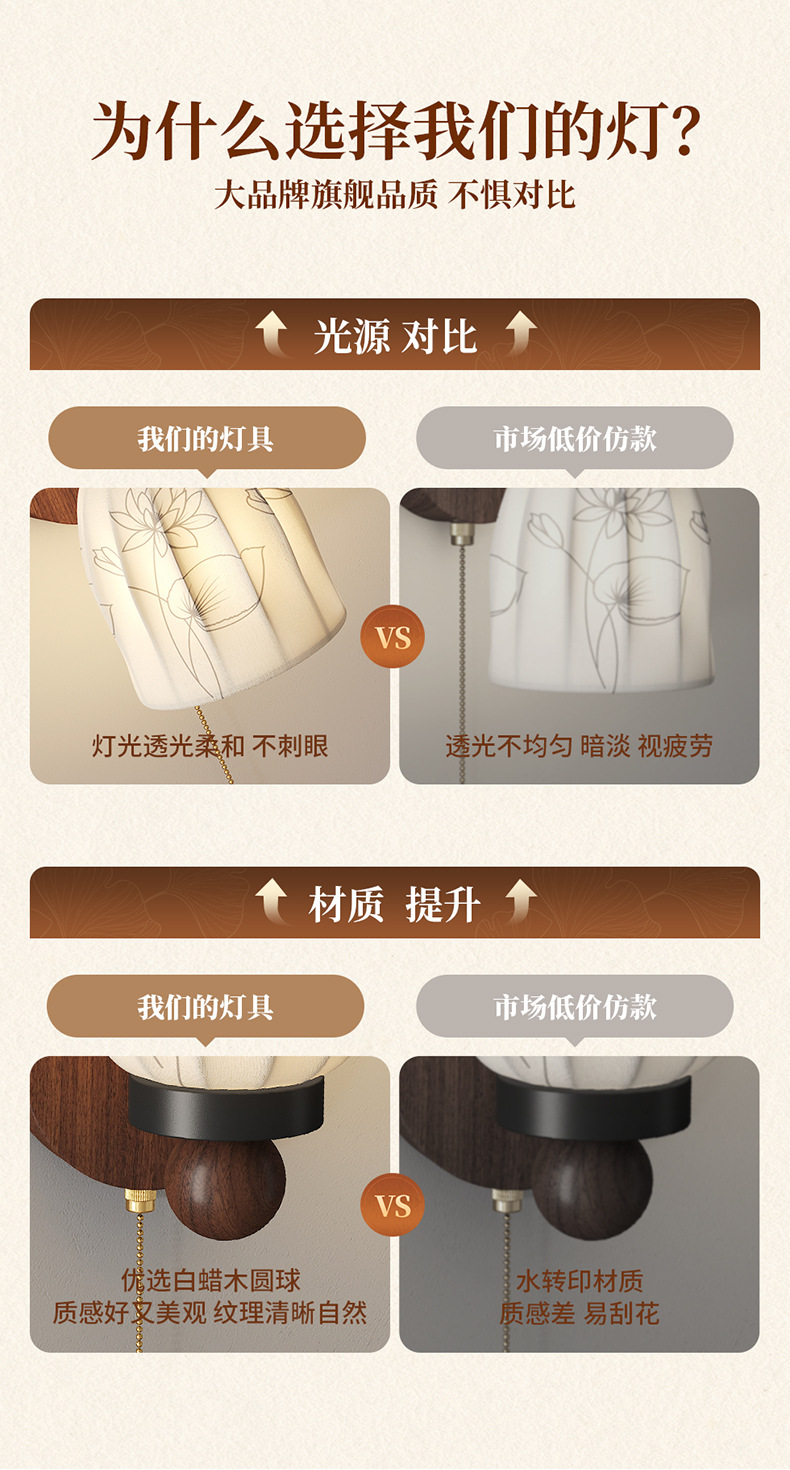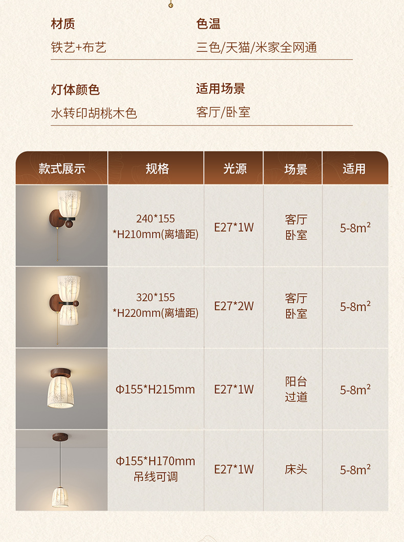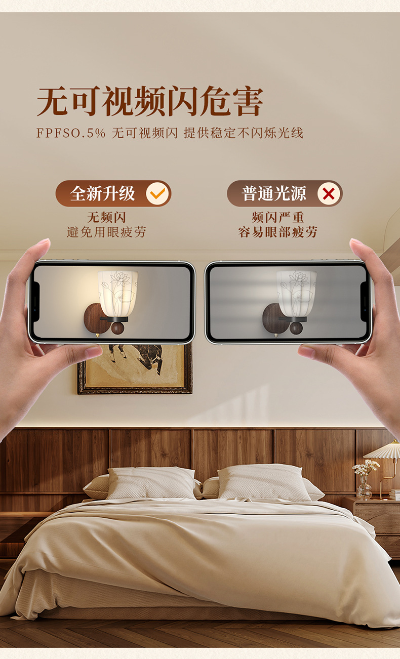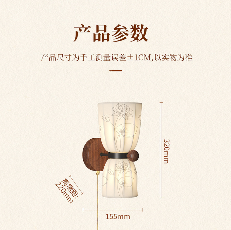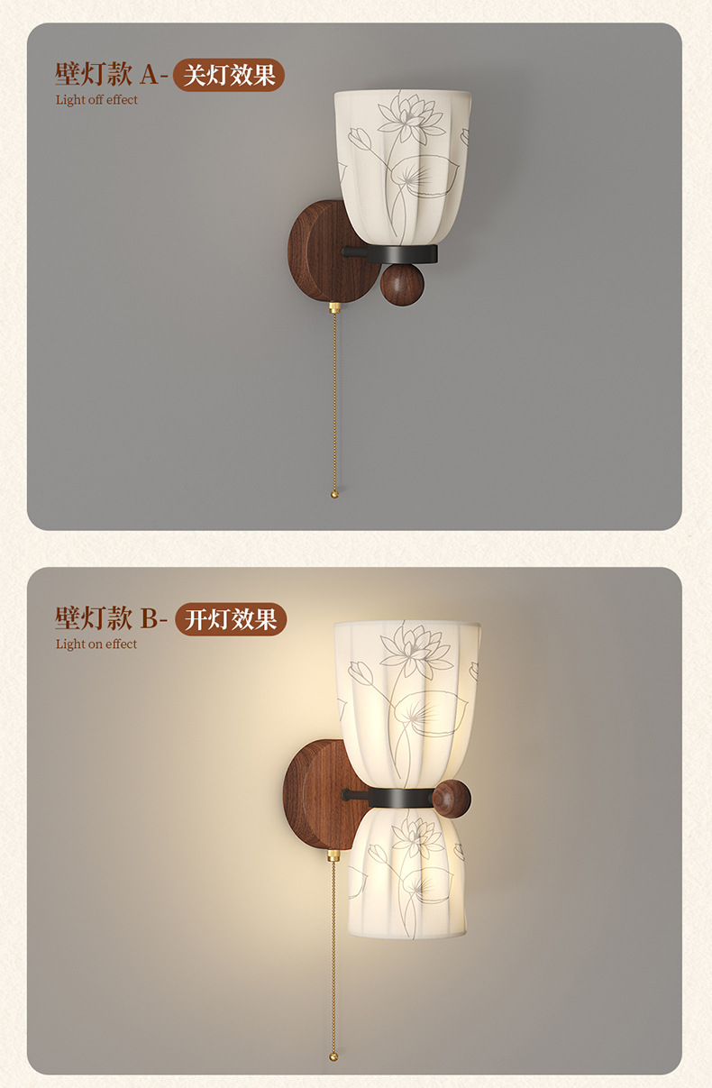 Estilo medio, dinastía Song, estética, lámpara de pared junto a la cama, grano de madera de nogal, sala de estar retro, dormitorio, iluminación de pared de fondo, 2025 nuevo