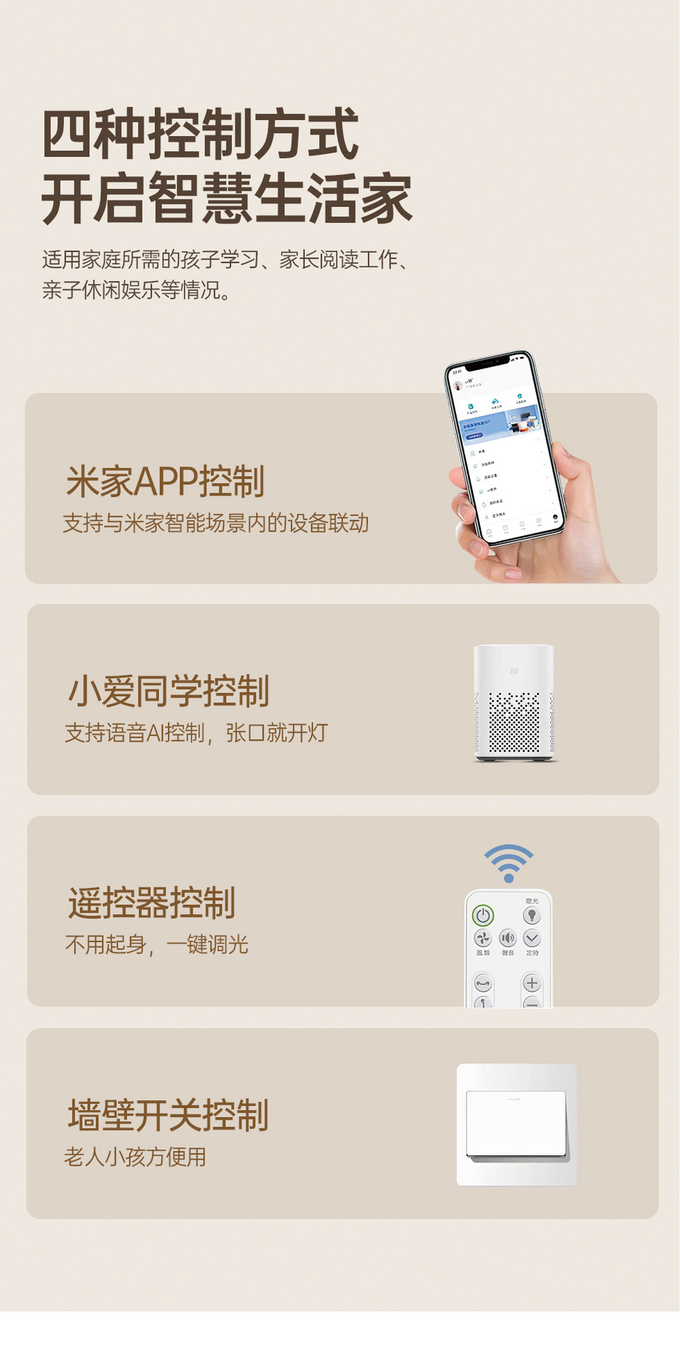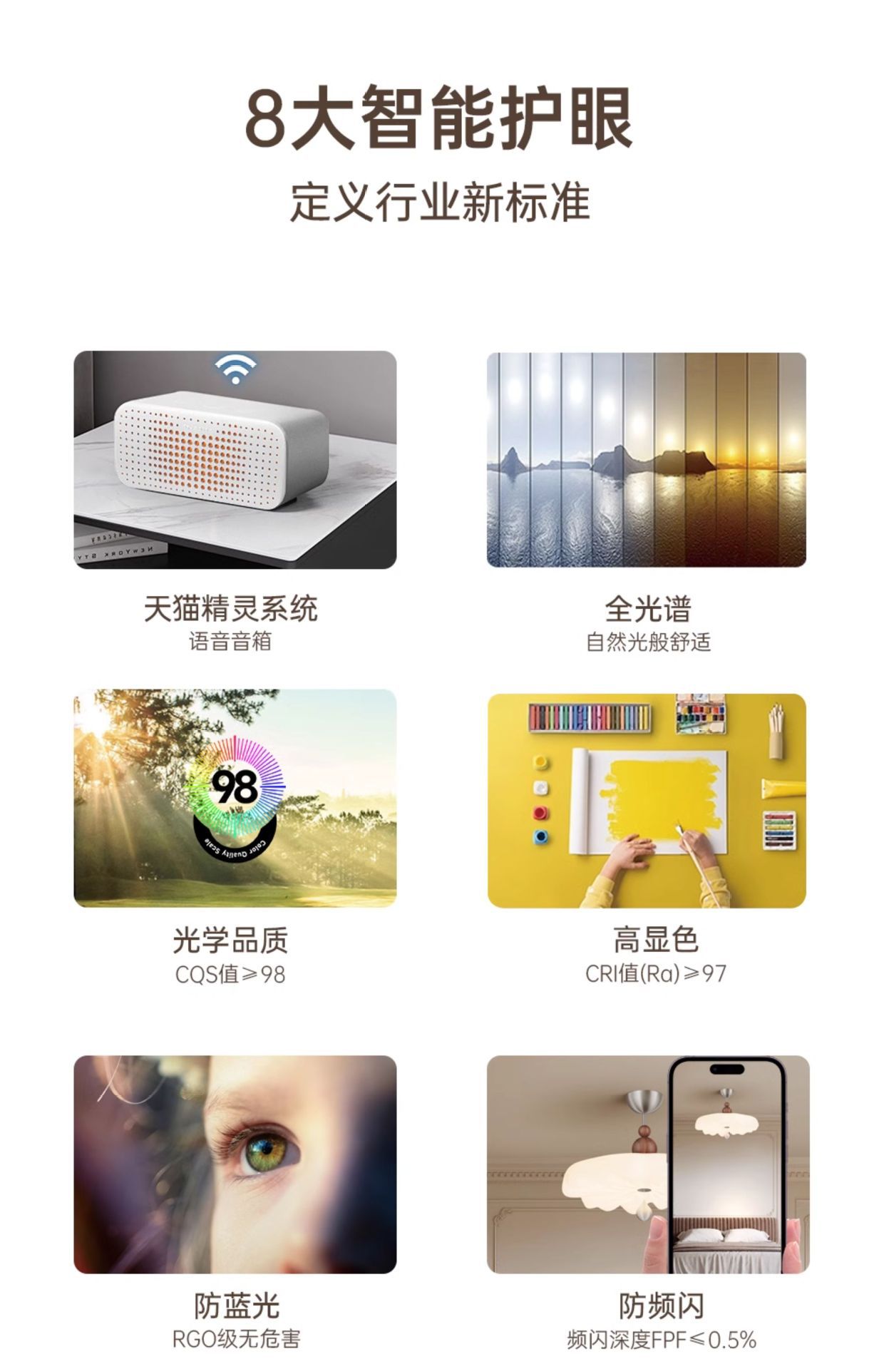| Colores de luz | Luz variable de tres colores [protección ocular de espectro completo],Admite atenuación infinita Tmall Wizard [Protección ocular de espectro completo],Atenuación continua: admite control por voz Xiao Ai [Protección ocular de espectro completo] |