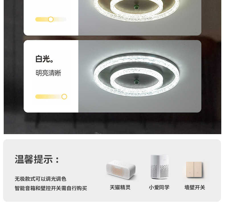 | Colores de luz | Tricolor cambia de luz,Promise Tmall,Apoya el control de Xiao Ai |