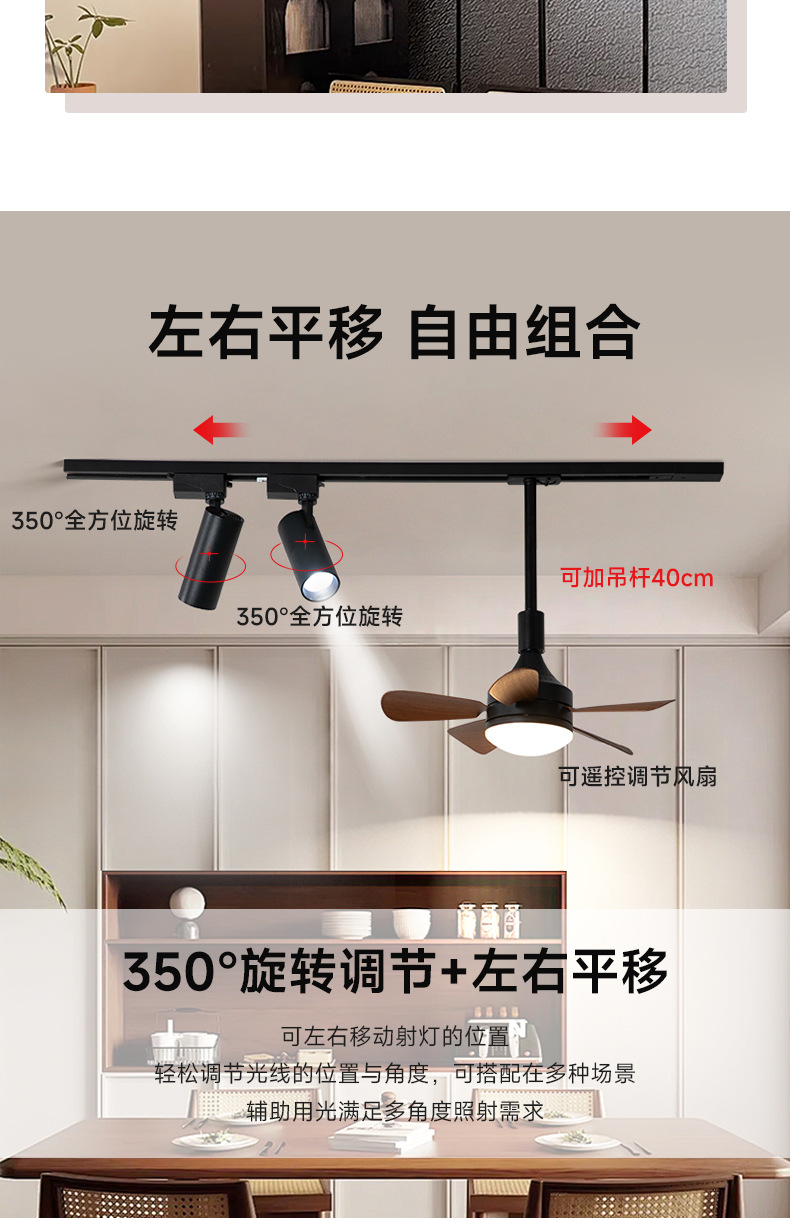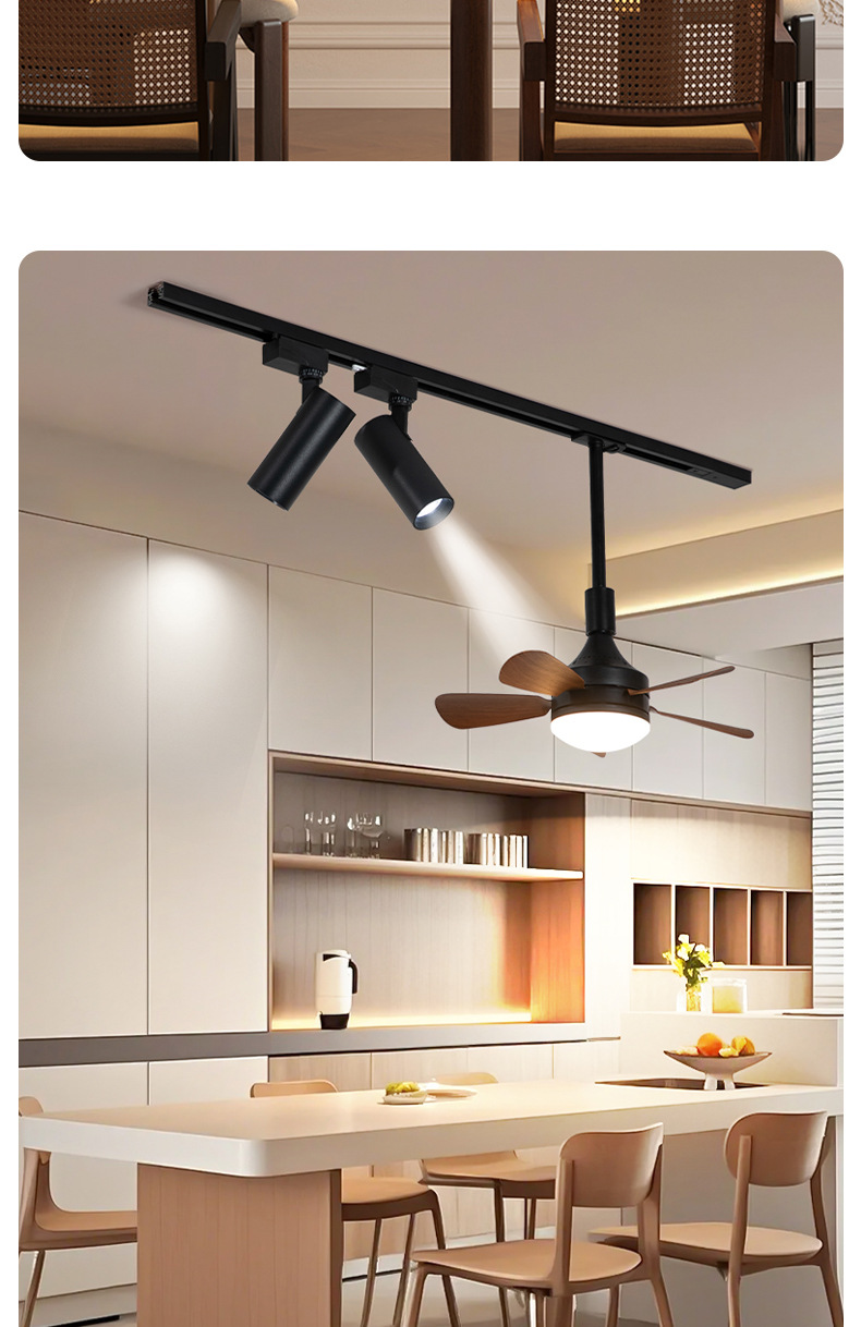 2025 nuevo candelabro de restaurante con ventilador de estilo antiguo, vetas de madera, riel móvil, barra, isla, mesa de comedor, lámpara