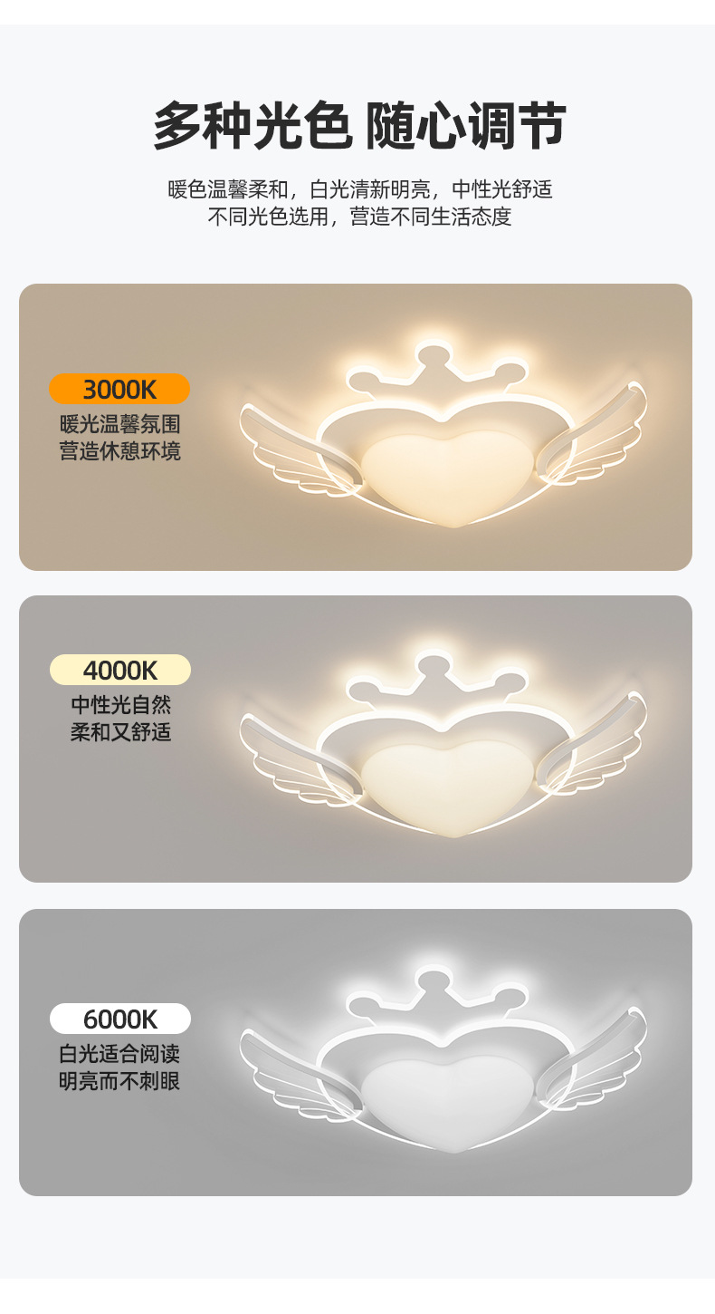| Colores de luz | Luz blanca de espectro completo,Luz cálida de espectro completo,Luz variable tricolor de espectro completo,Elfo Tmall de espectro completo,Atenuación infinita de espectro completo,El espectro completo admite el control de Xiao Ai |